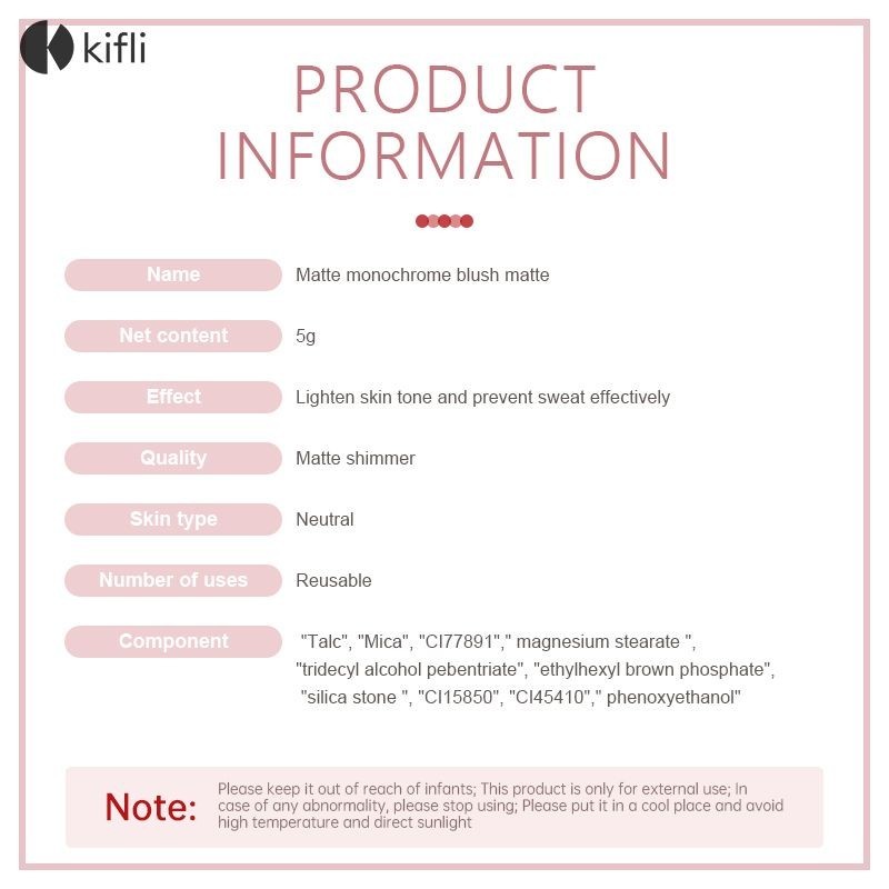 kifli.thMonochrome Blusher Brightens Skin Tone Matte Blusher Fine Glitter Highlight Color Blusher-KI