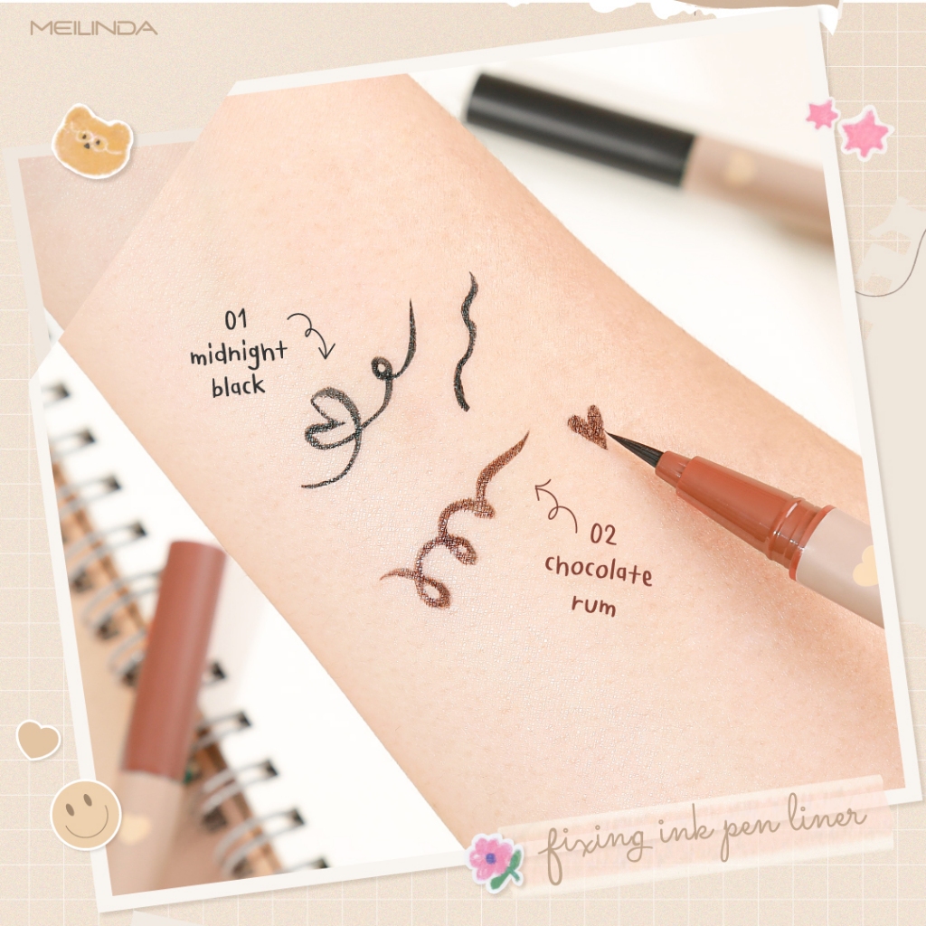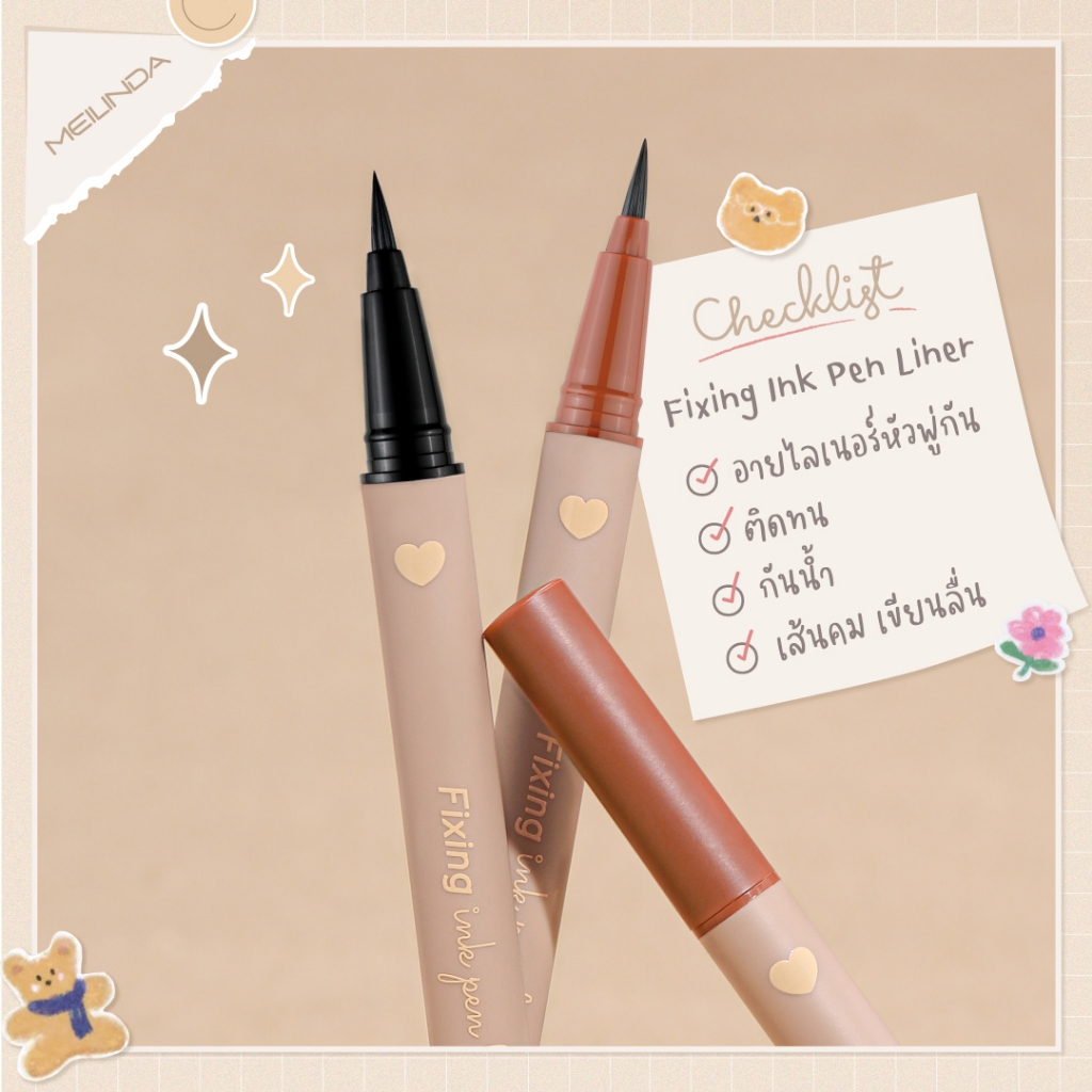 เมลินดา อายไลเนอร์ หัวพู่กัน ติดทน กันน้ำ กันเหงื่อ Meilinda Fixing Ink Pen Liner MC 3116 0.65 g.