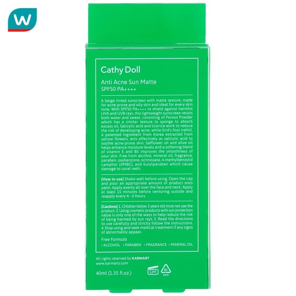 Cathy Doll เคที่ ดอลล์ แอนตี้ แอคเน่ ซัน แมทท์ เอสพีเอฟ50 พีเอ++++ 40 มล.