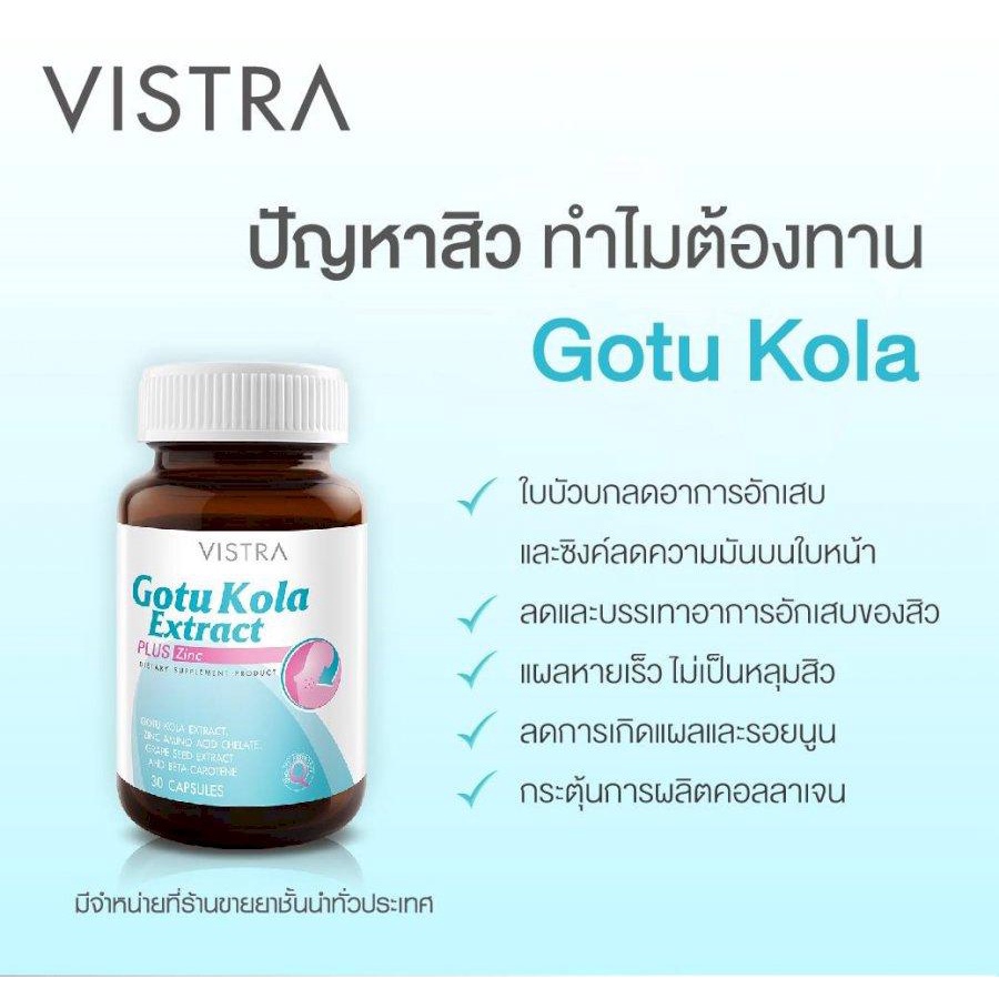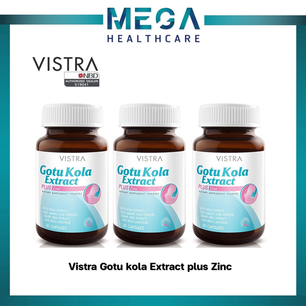 ((ซื้อVistra3ขวด)) Vistra Gotu Kola Extract plus Zinc 30 เม็ด