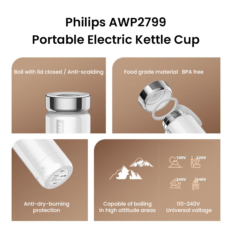 หม้อต้มกาต้มน้ําไฟฟ้า Philips AWP2799 ถ้วยกาต้มน้ําไฟฟ้า 2-IN-1 ออกแบบต้มขวดฉนวนกันความร้อนสูญญากาศ