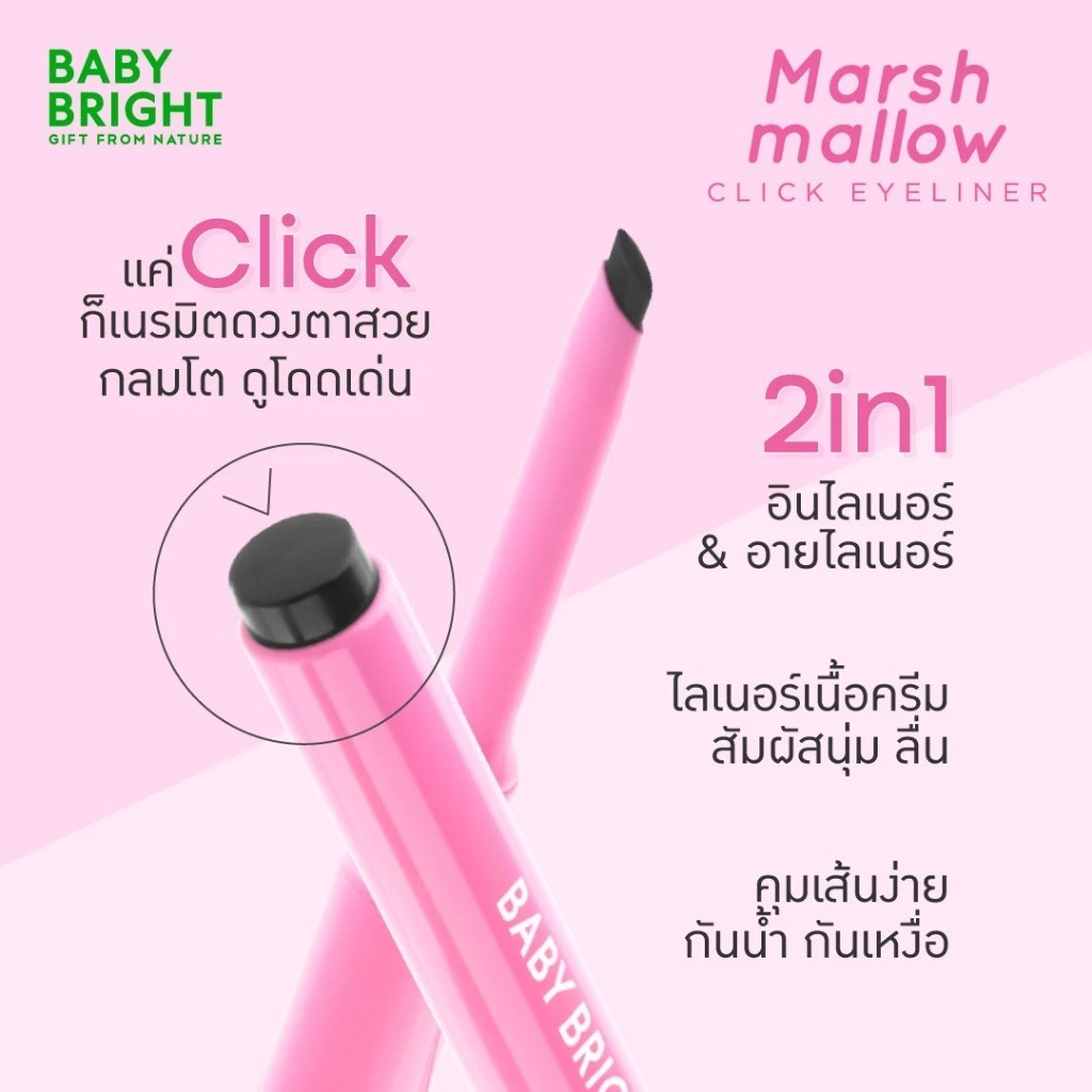 ถูก/แท้/มีไลฟ์ อายไลน์เนอร์ Baby Bright Marshmallow Click Eyeliner ไลเนอร์ตาหวาน เนื้อครีม นุ่มลื่น เขียนง่าย ติดทน