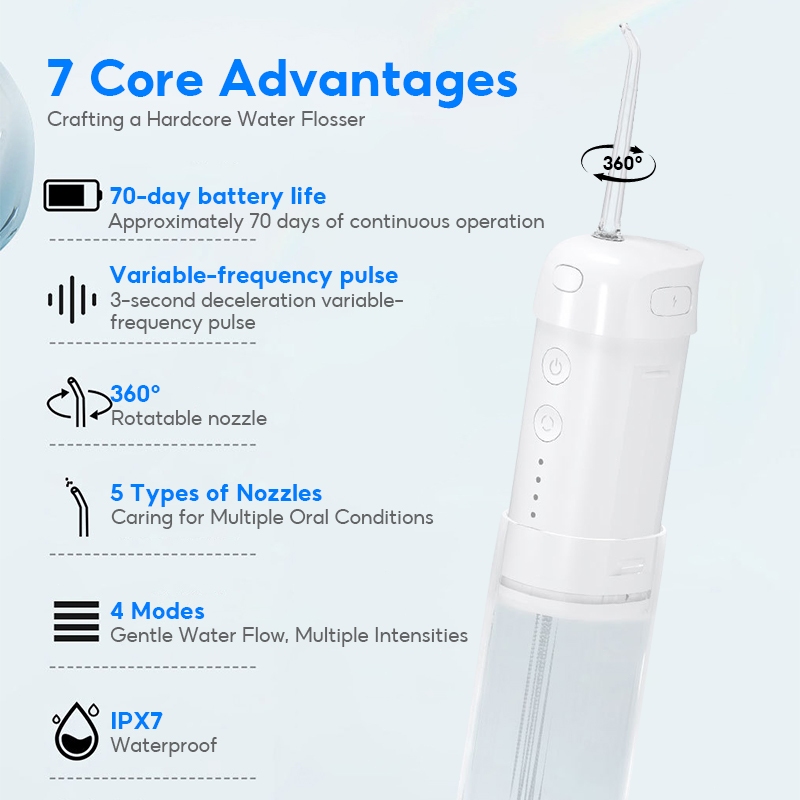 MeeGoo เครื่องล้างฟันพกพา Water Flosser 200ml ไหมขัดฟันพลังน้ำ (4 โหมด+5 หัวฉีด) IPX7 กันน้ำ น้ำ