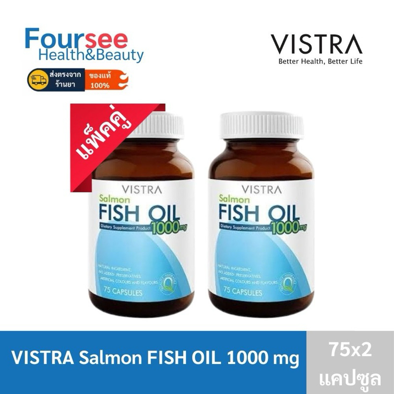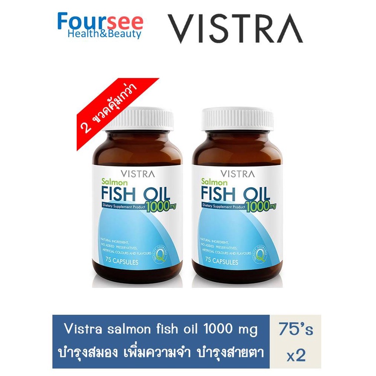 VISTRA SALMON FISH OIL 1000 mg 75 แคปซูล วิสทร้า น้ำมันปลาแซลมอน ฟิชออย บำรุงสมองและความจำ