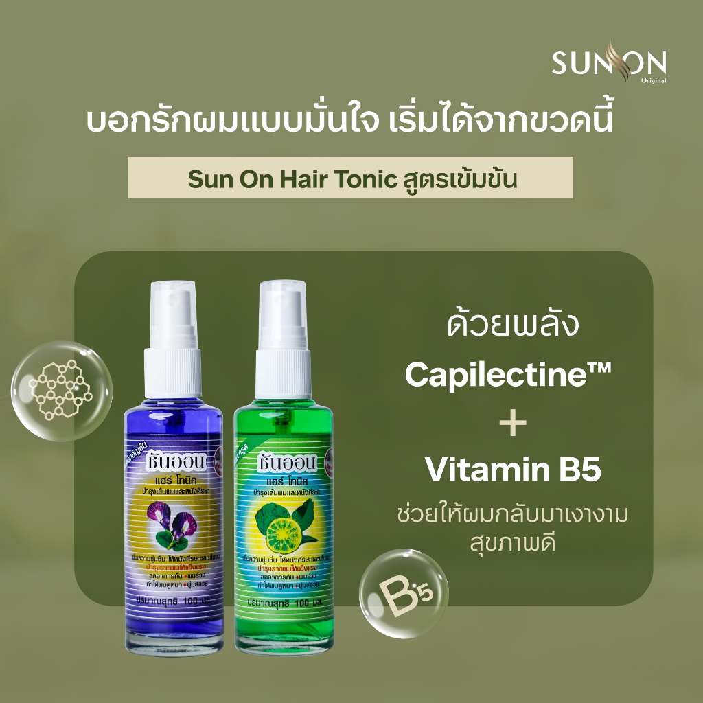 Sun on hair tonic 100 ml. ซันออน แฮร์ โทนิค อาหารผม ลดผมร่วง เร่งผมยาว