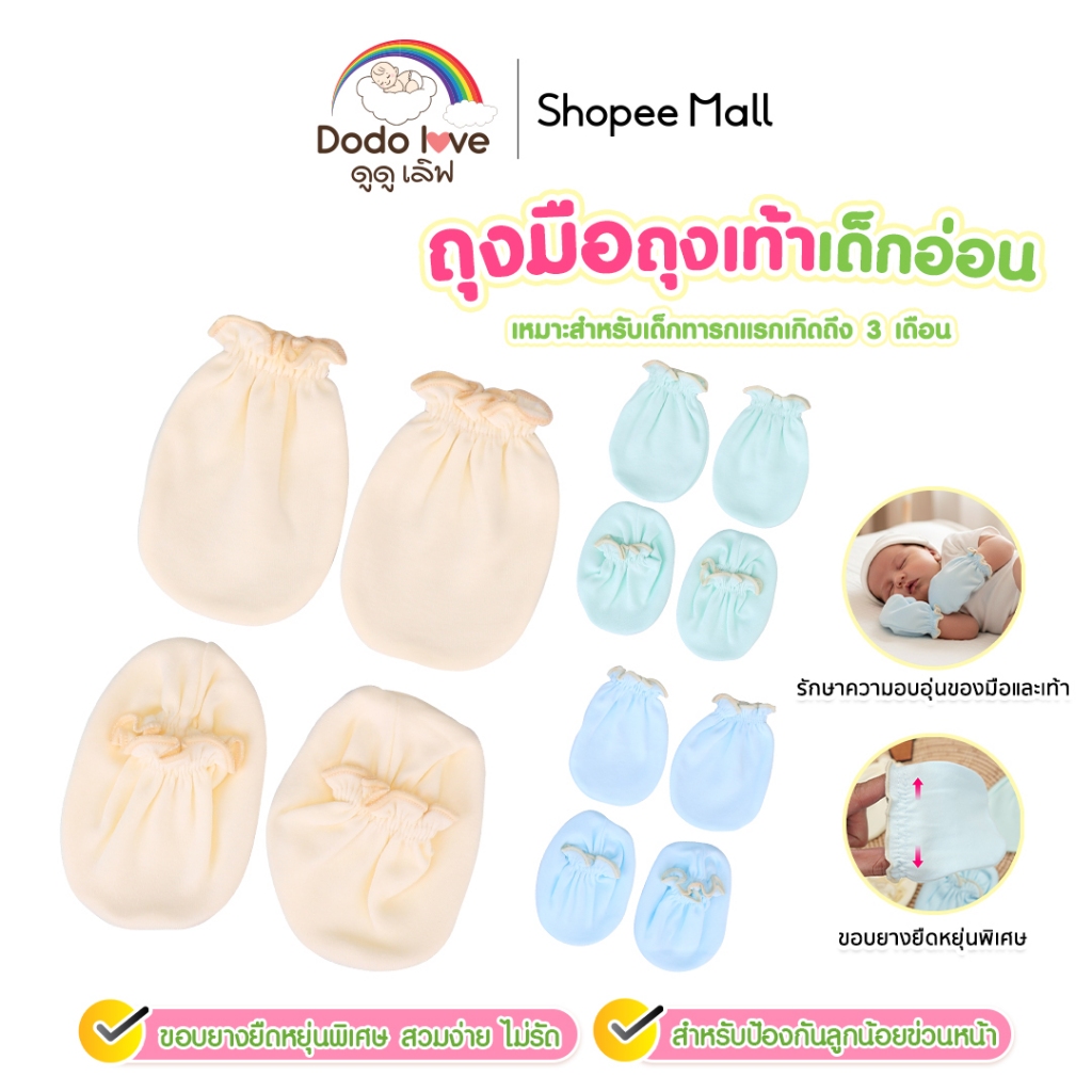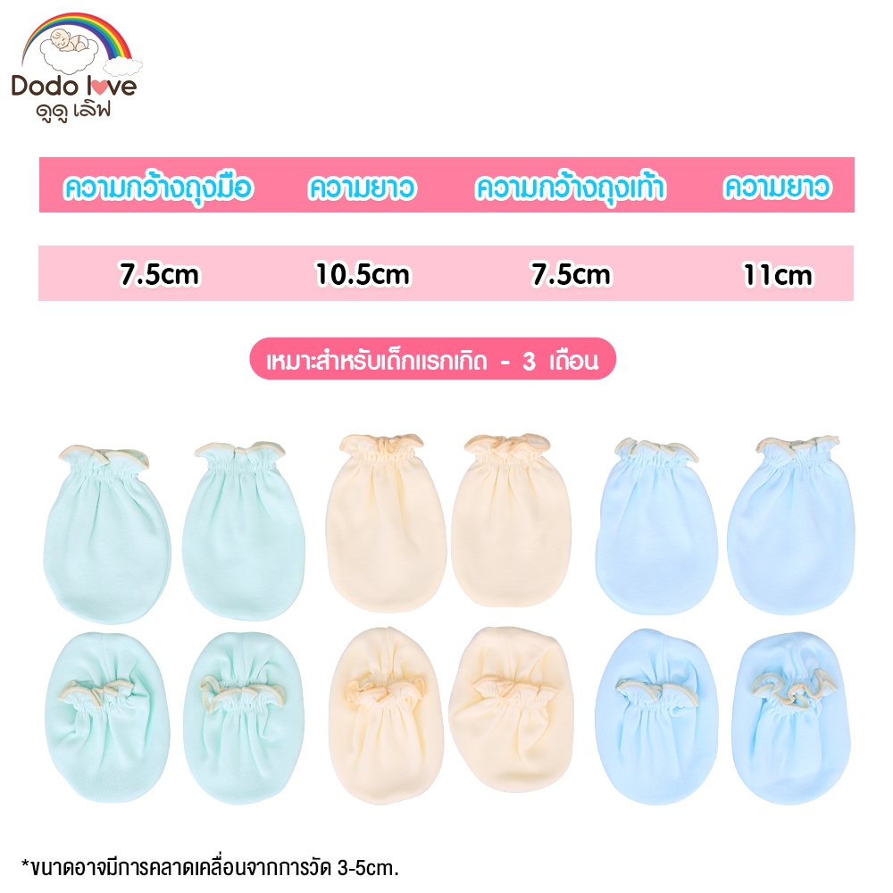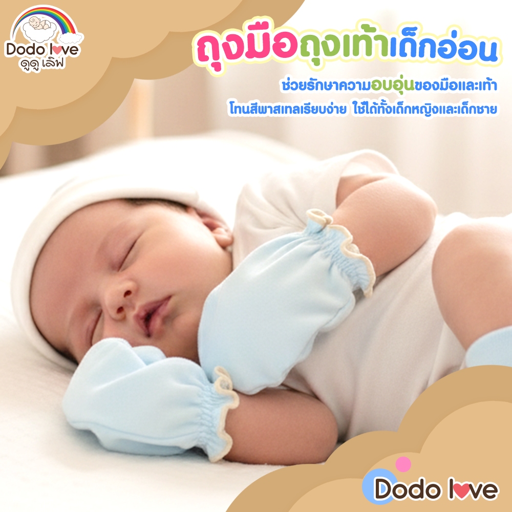 Dodolove ถุงมือ ถุงเท้า เด็กอ่อน เนื้อผ้าคอตตอน เซ็ทถุงมือ ถุงเท้า สำหรับเด็ก
