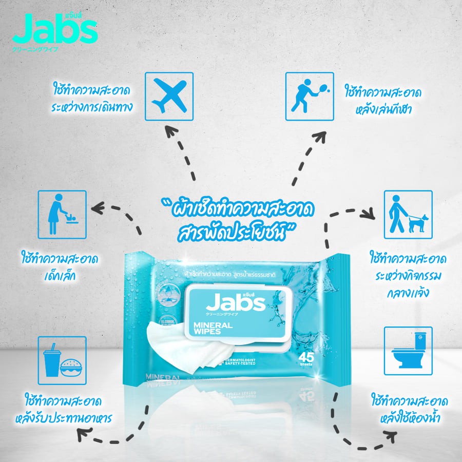 Jabs แจ๊บส์ ผ้าเช็ดทำความสะอาด ทิชชู่เปียก น้ำแร่ธรรมชาติ 45 แผ่น