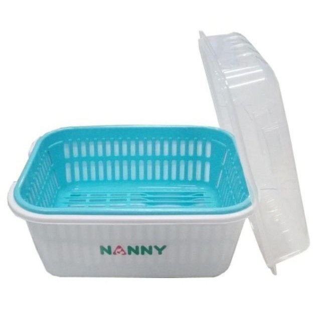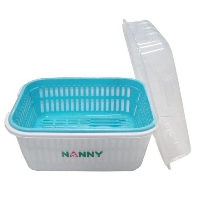 Nanny ที่คว่ำขวดนมแบบมีฝาปิด มีตะแกรงรองน้ำ ไซส์ใหญ่ ขนาด 30x23x24ซม รวมฝา