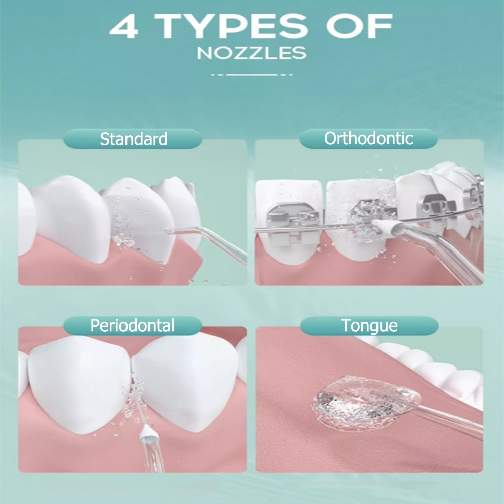 MEYARN Water Flosser เครื่องชลประทานทันตกรรมไหมขัดฟันแบบชาร์จไฟได้ 4 หัวฉีดความจุสูง