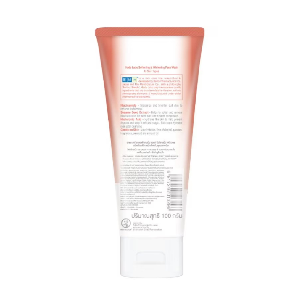 Hada Labo Softening & Whitening Face Wash 100ml. ฮาดะ ลาโบะ ซอฟท์เทนิ่ง แอนด์ ไวท์เทนนิ่ง เฟส วอช