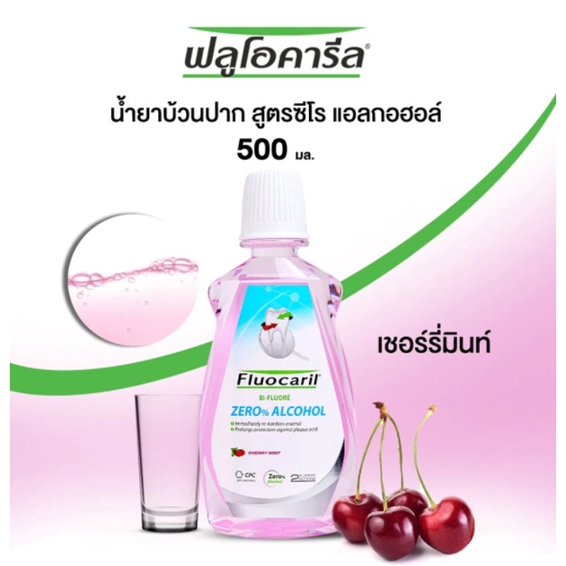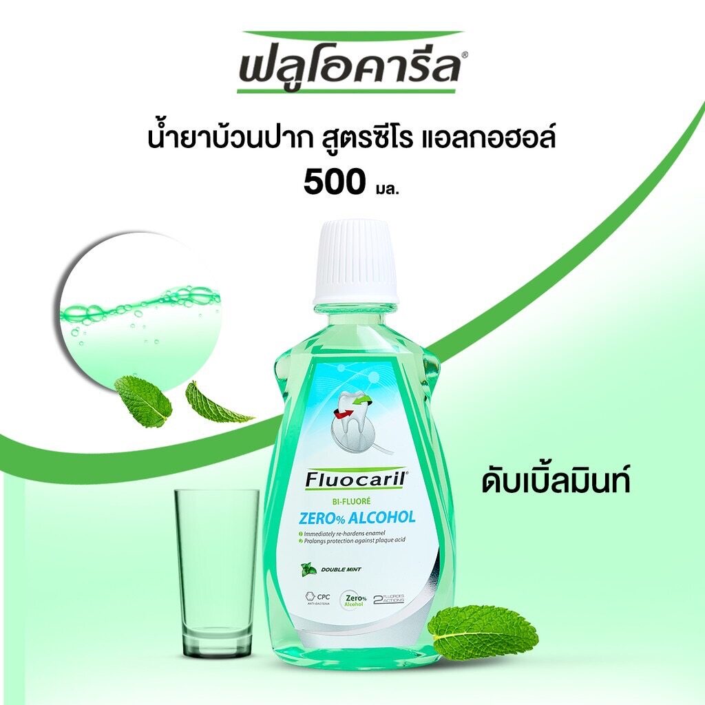Fluocaril ฟลูโอคารีล น้ำยาบ้วนปากสูตรซีโรแอลกอฮอล์&สูตรคนจัดฟัน ขนาด 500 มล.