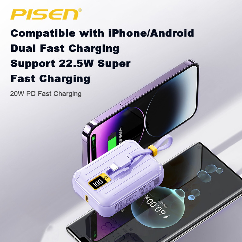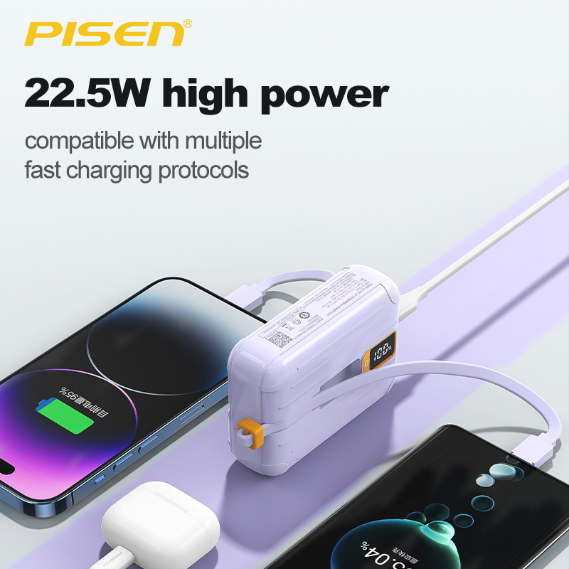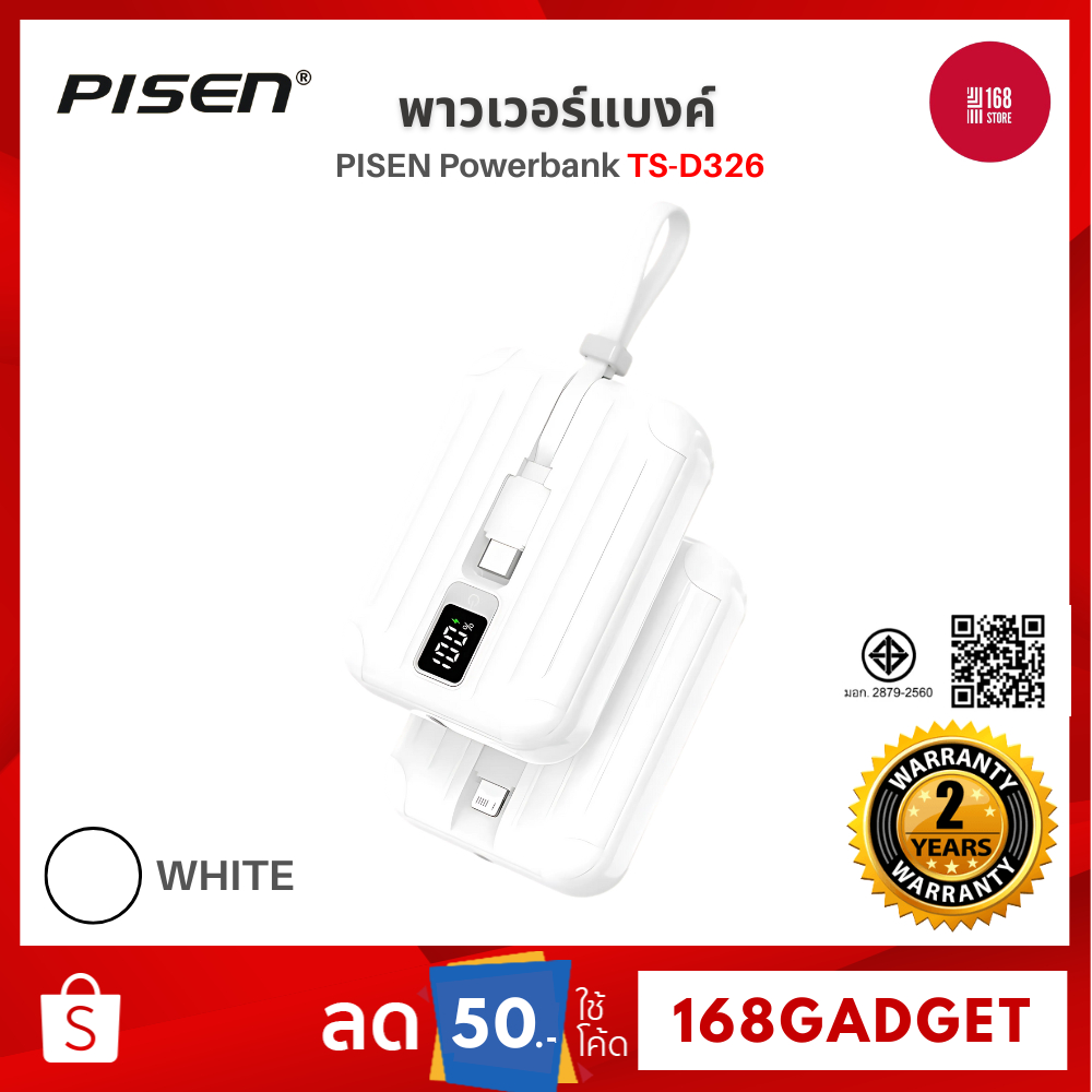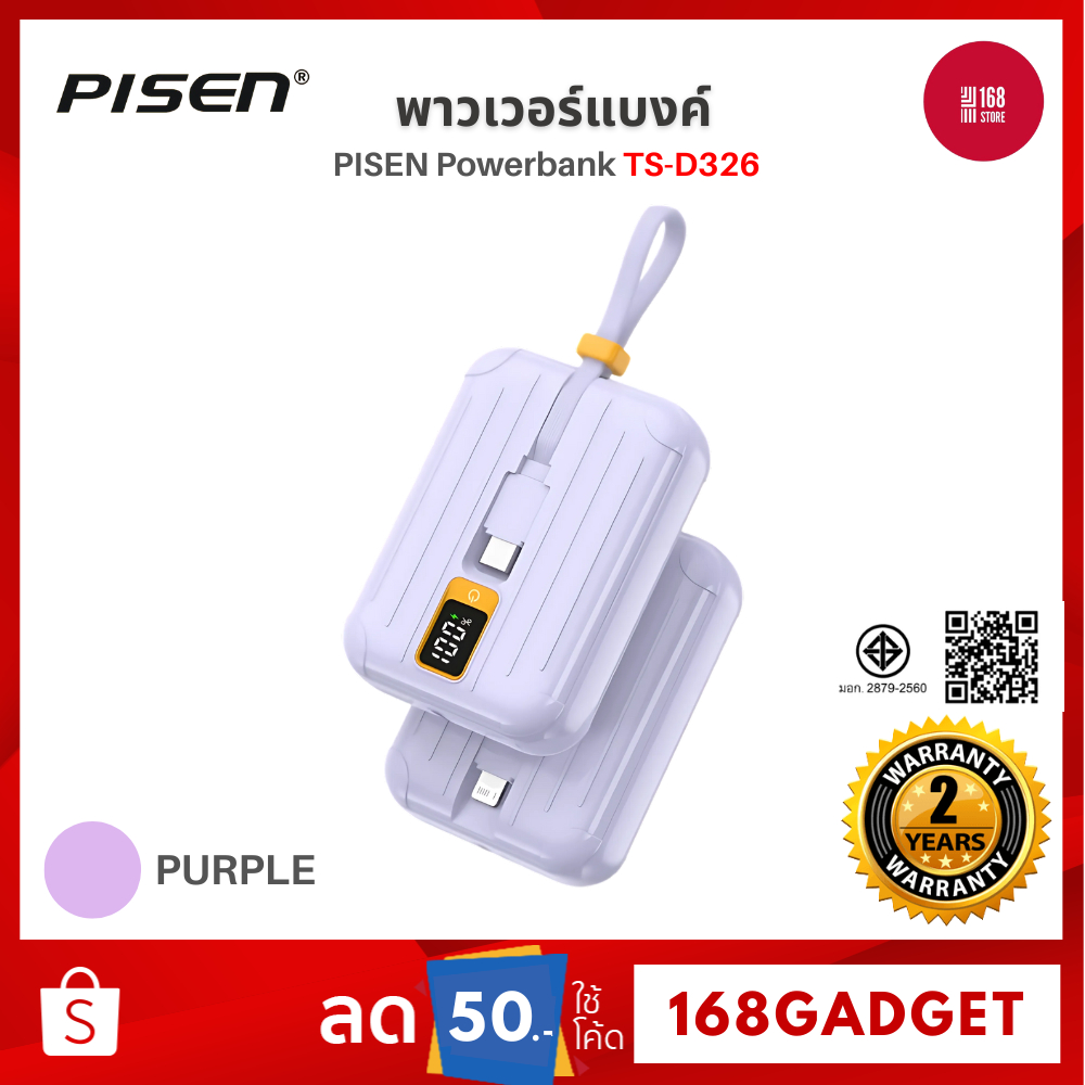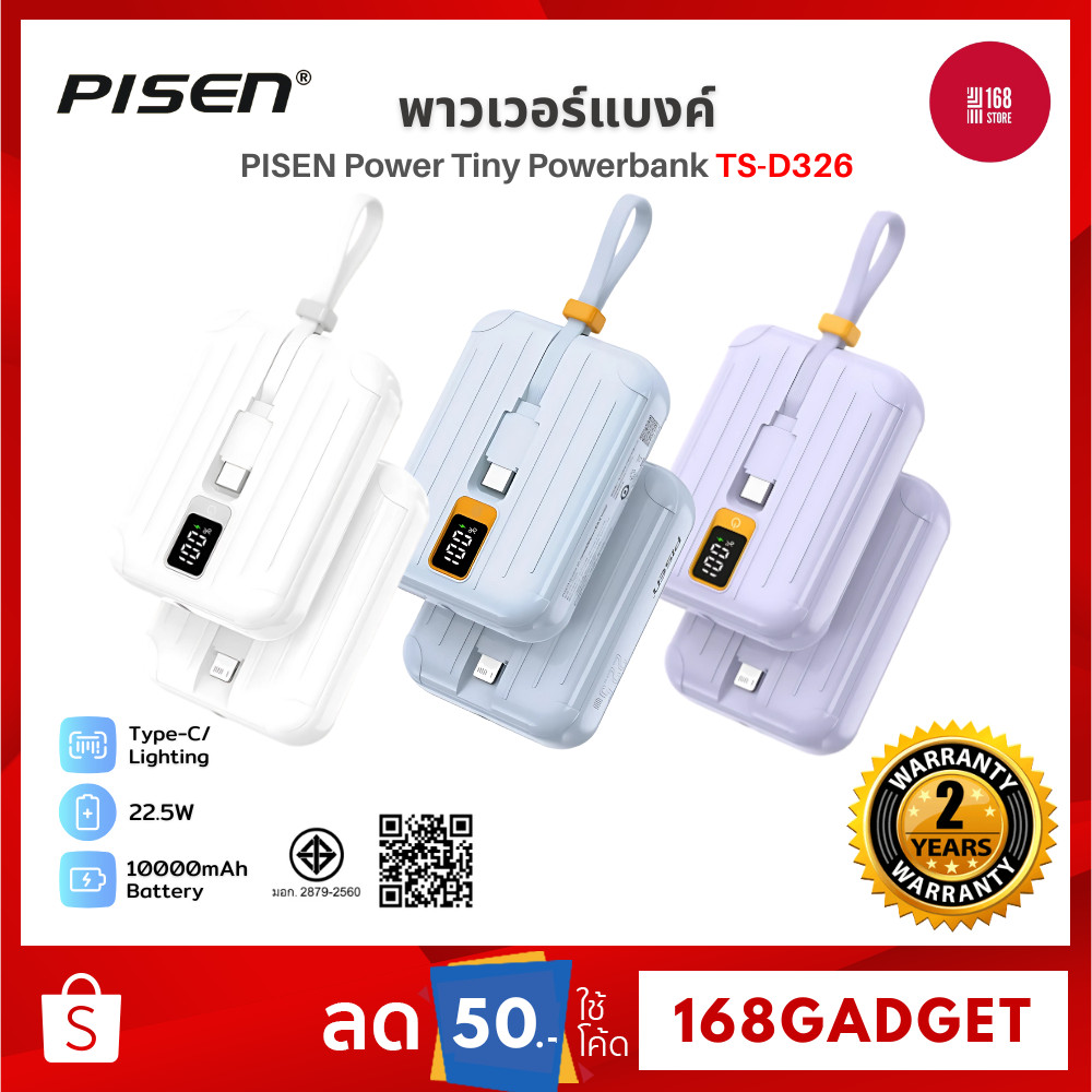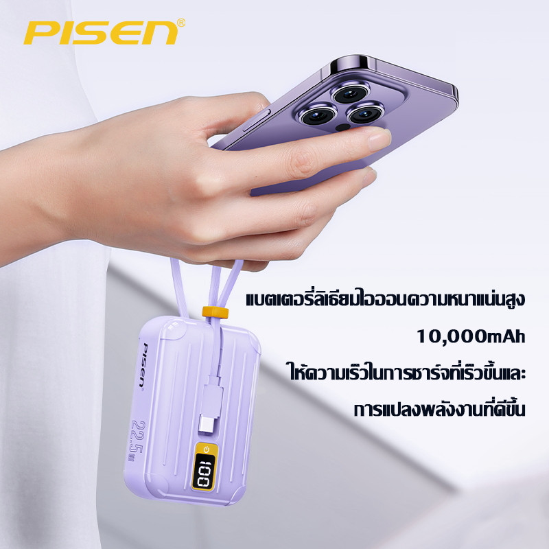 PISEN Powerbank TS-D326 พาวเวอร์แบงค์ 22.5W ความจุ 10,000mAh พร้อมสายไฟคู่ Type C + Lightning รับประกัน 2 ปี