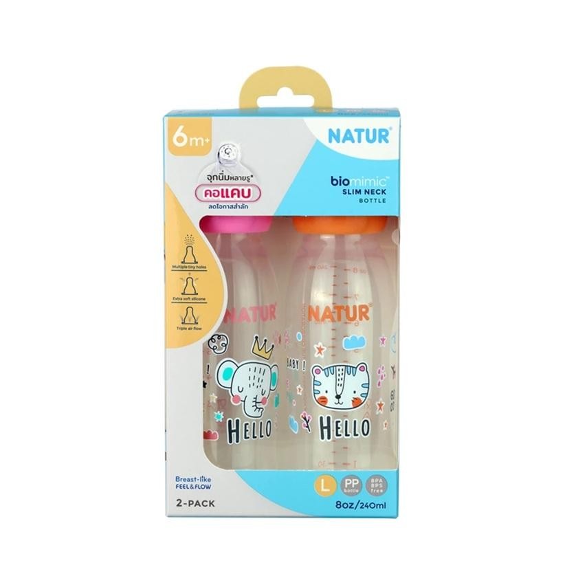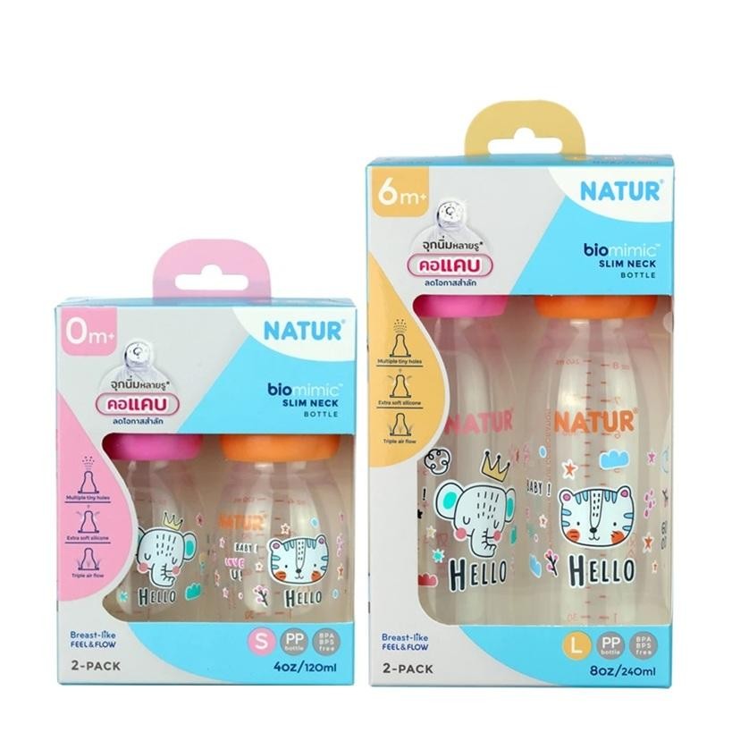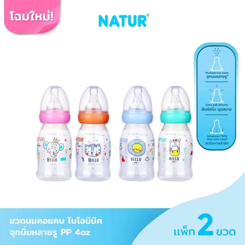 Natur เนเจอร์ ขวดนมคอแคบไบโอมิมิค 4 / 8 oz แพ็ก 2 ขวด