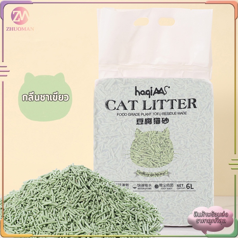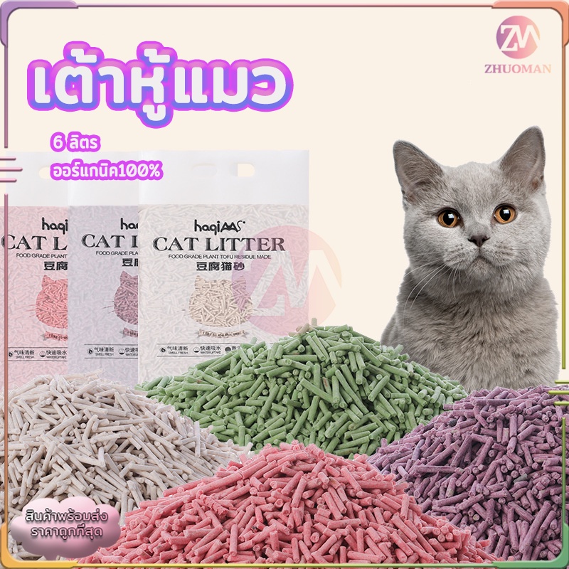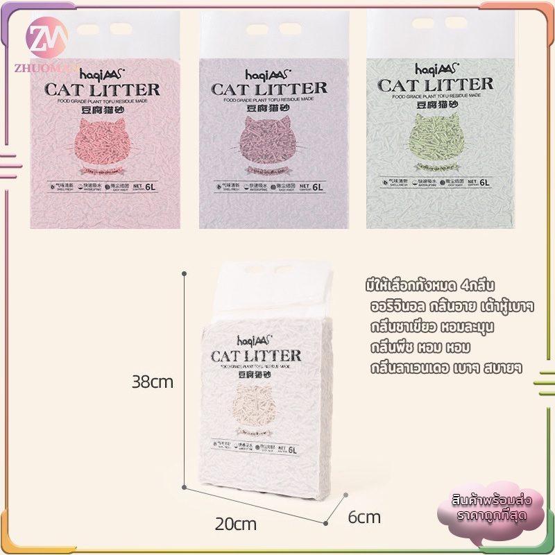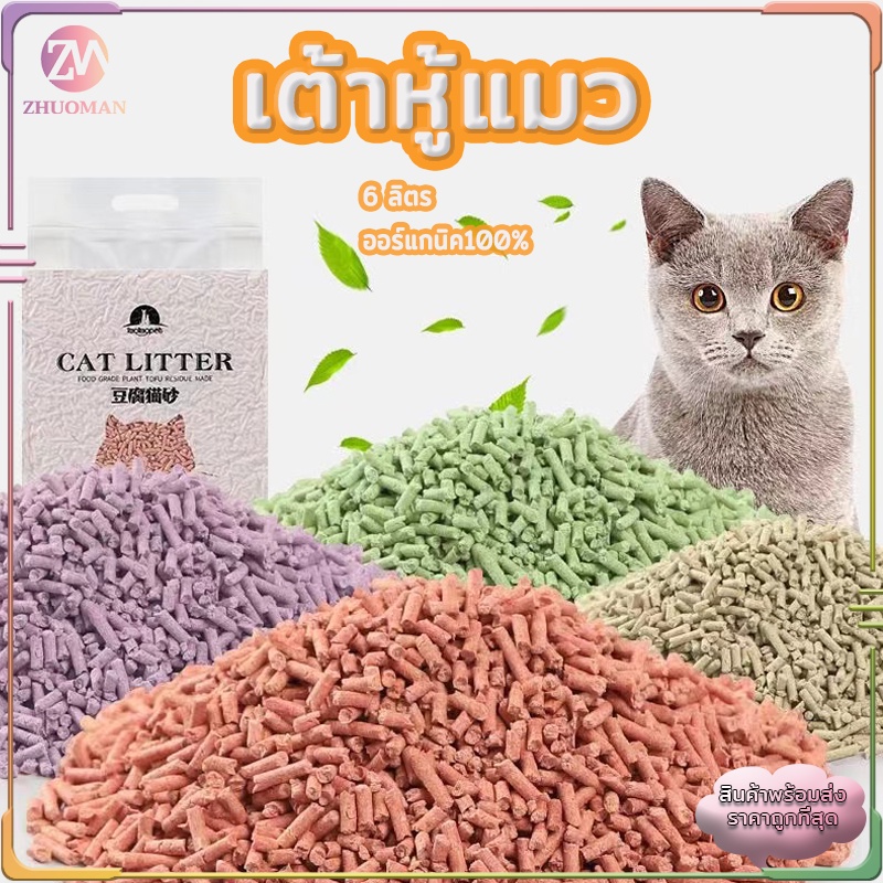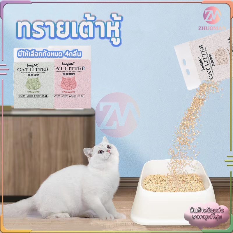 ทรายแมว 6 ลิตร ทรายแมวเต้าหู้ แบบใหม่ ทรายเต้าหู้ ออร์แกนิค100% ผลิตจากกากถั่วเหลืองธรรมชาติ 4 กลิ่น ปลอดภัย