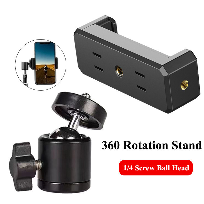 Universal Tripod Mount CellPhone Holder Clip Stand 1/4 Screw Ball Head Adapter 360 Rotate Camera Bracket