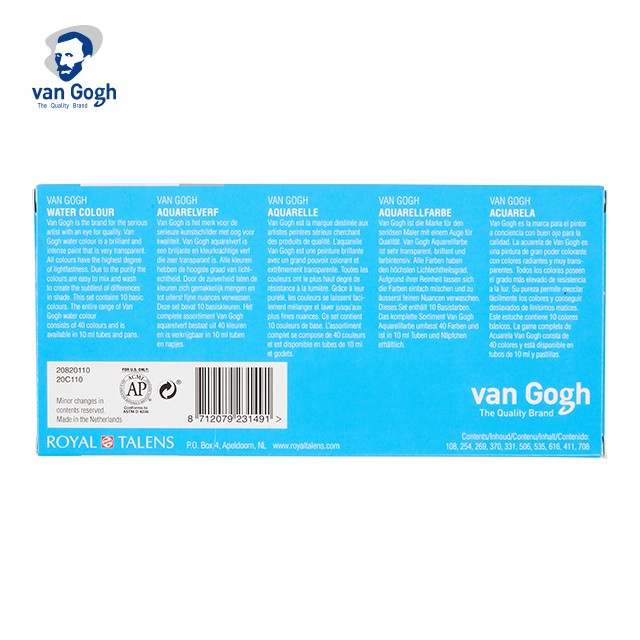 VAN GOGH สีน้ำ 10 สีหลอด 10ml. (GOGH WTRCL.SET CARDB.20 C 110) 1 ชุด