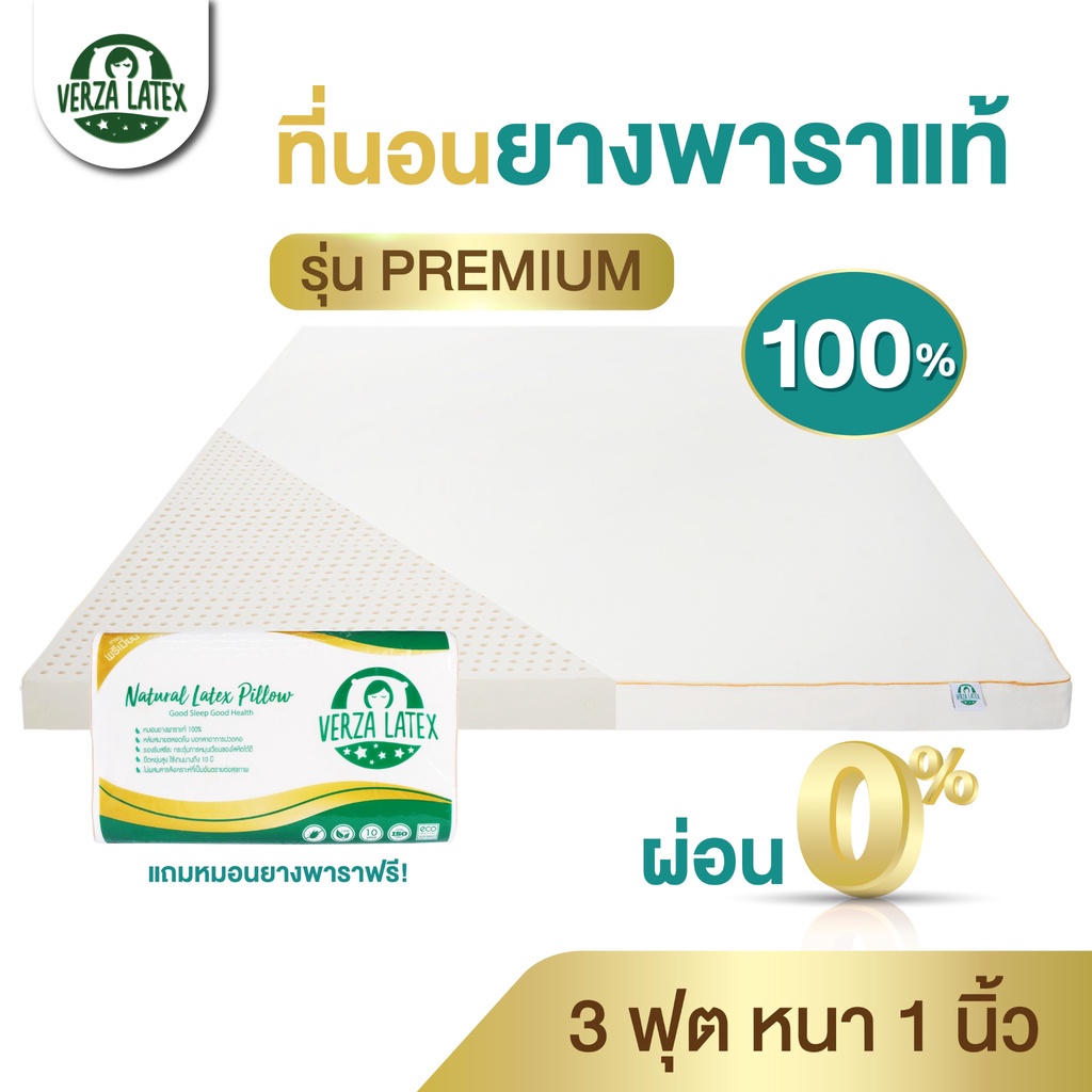 VERZA LATEX ที่นอนยางพาราแท้ Topper 3 ฟุต สูง 1 นิ้ว Premium/Lite ผ่อนได้ พร้อมหมอนรุ่น knobby 1 ใบ และปลอก ประกัน 10 ปี