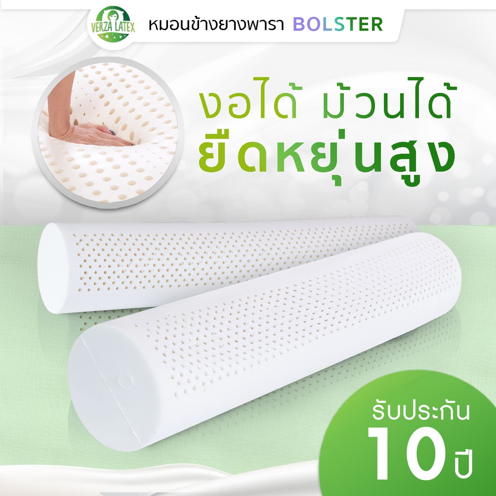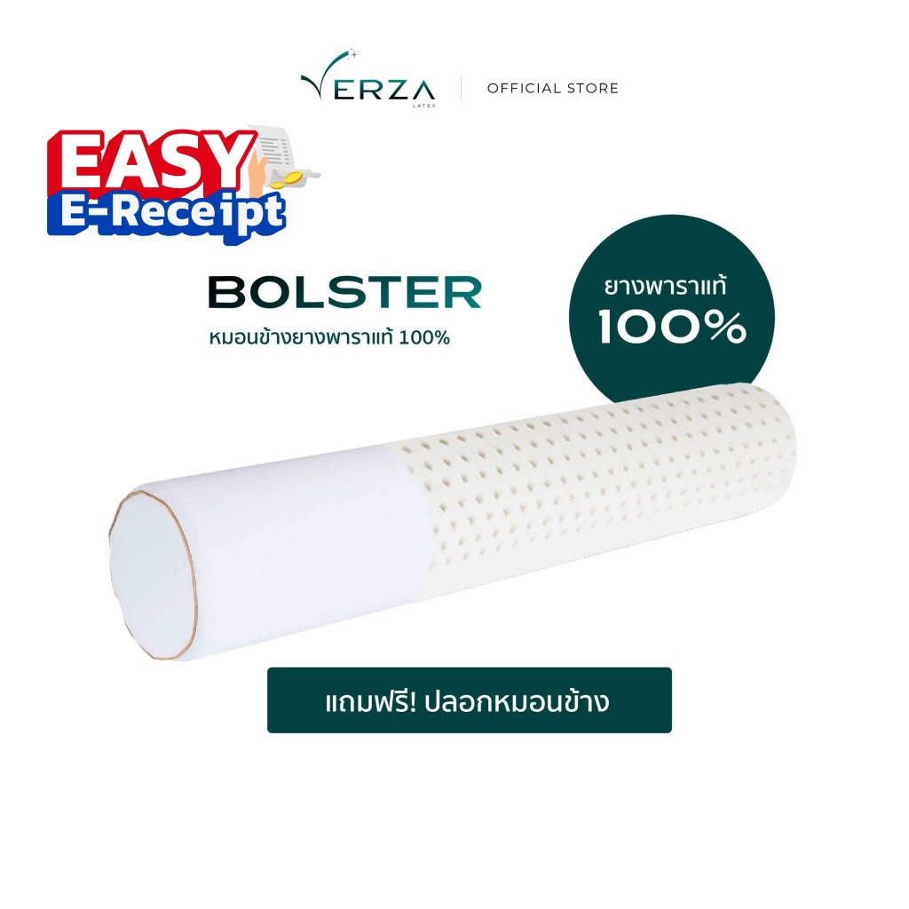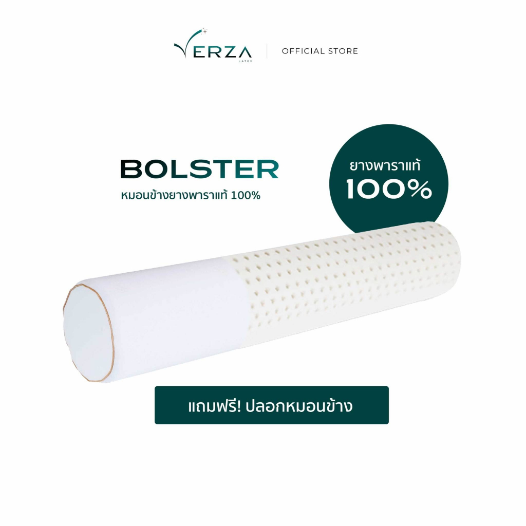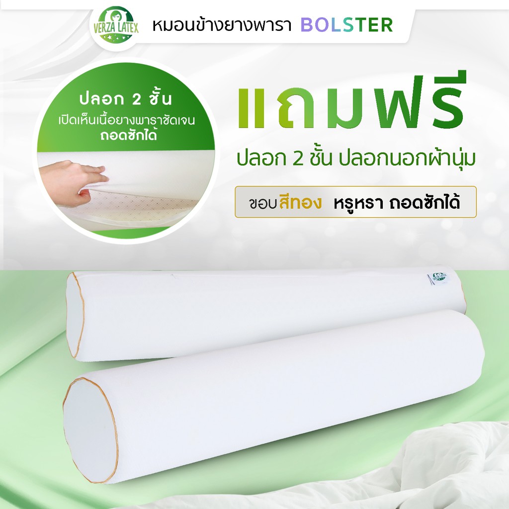 VERZA LATEx หมอนข้างยางพารา แท้ 100% พร้อมปลอกแต่งขอบสีทอง ติดซิปถอดซักได้ รับประกัน 10 ปี