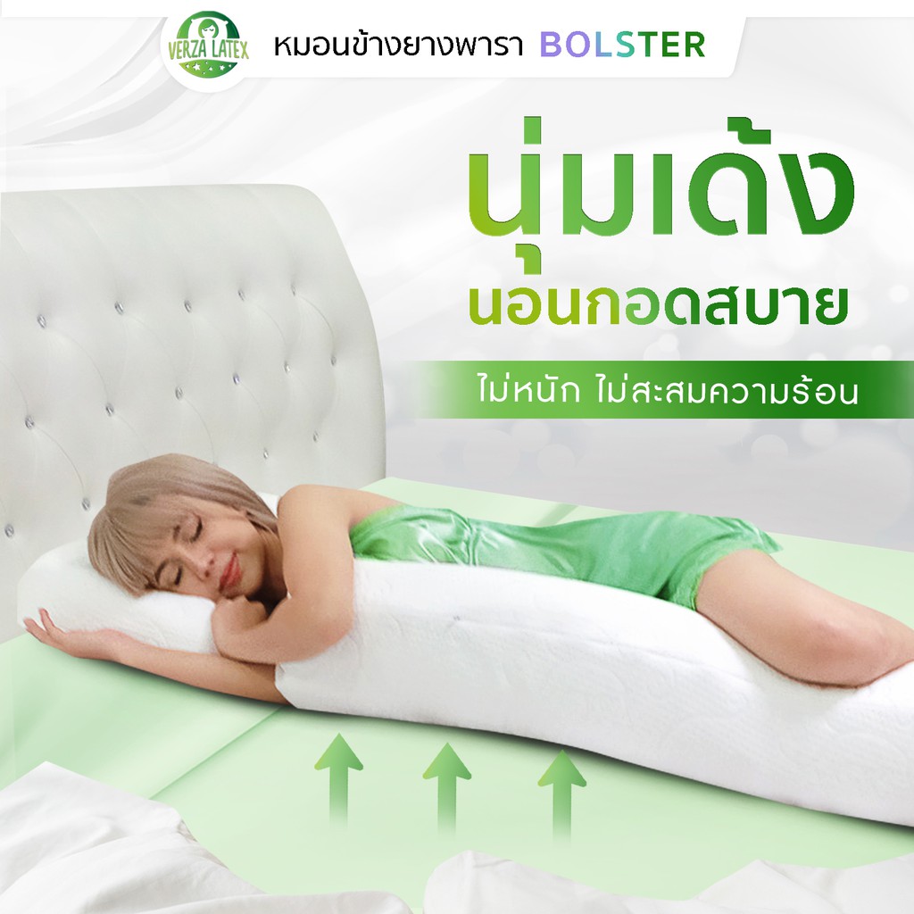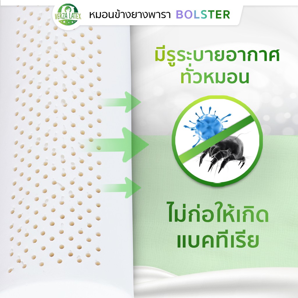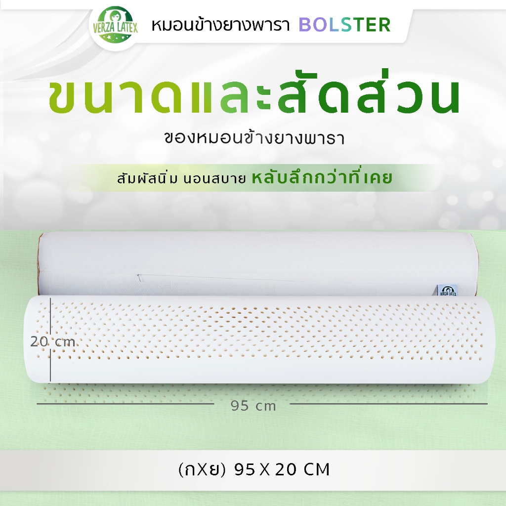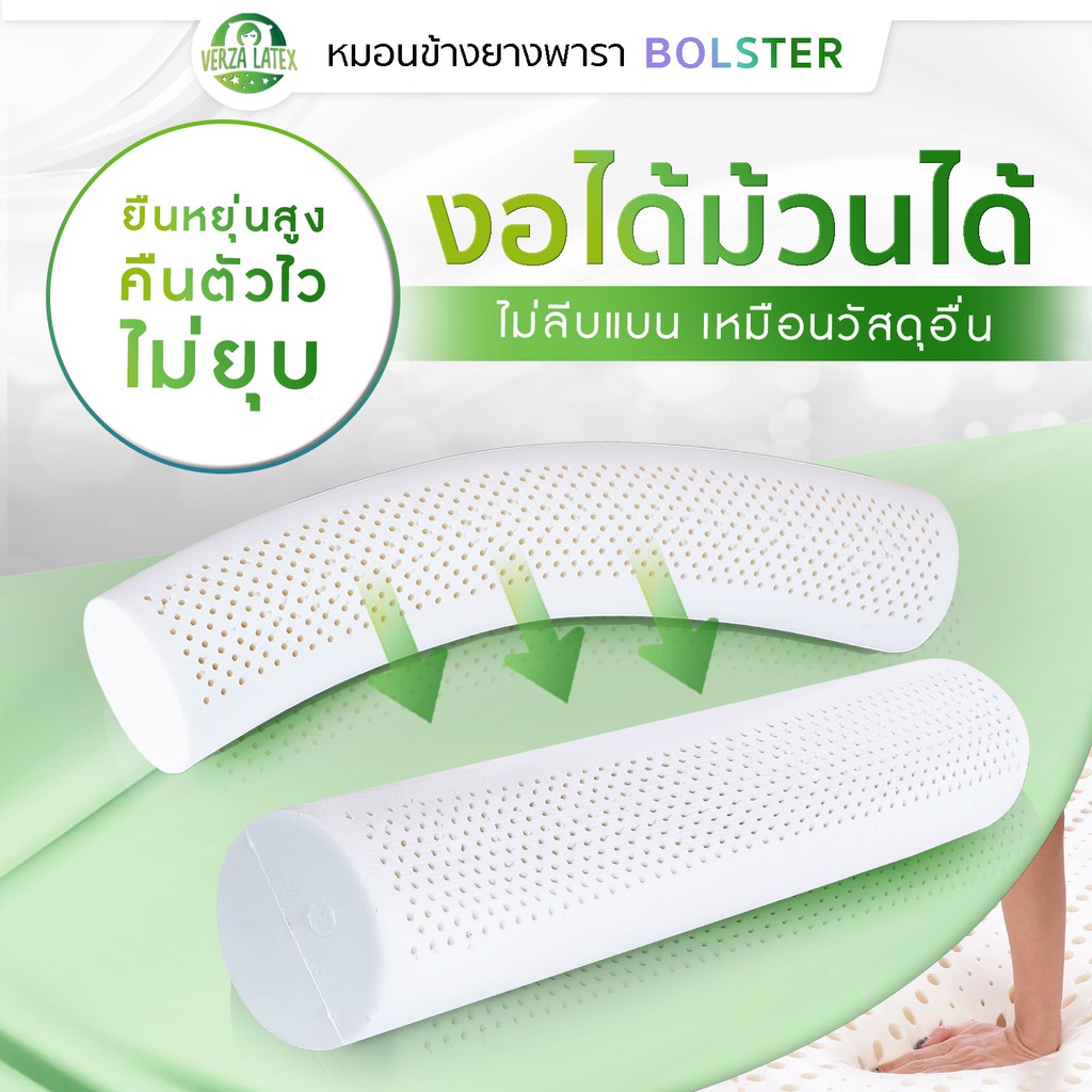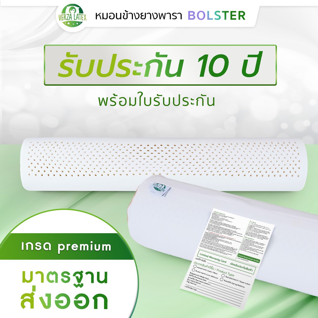 VERZA LATEx หมอนข้างยางพารา แท้ 100% พร้อมปลอกแต่งขอบสีทอง ติดซิปถอดซักได้ รับประกัน 10 ปี