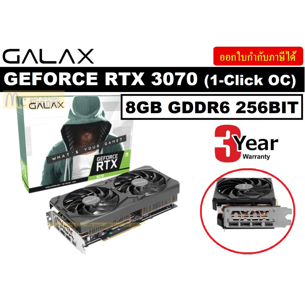 VGA (การ์ดแสดงผล) GALAX GEFORCE RTX 3070 (1-Click OC LHR ) - 8GB GDDR6 256BIT - ประกัน 3 ปี