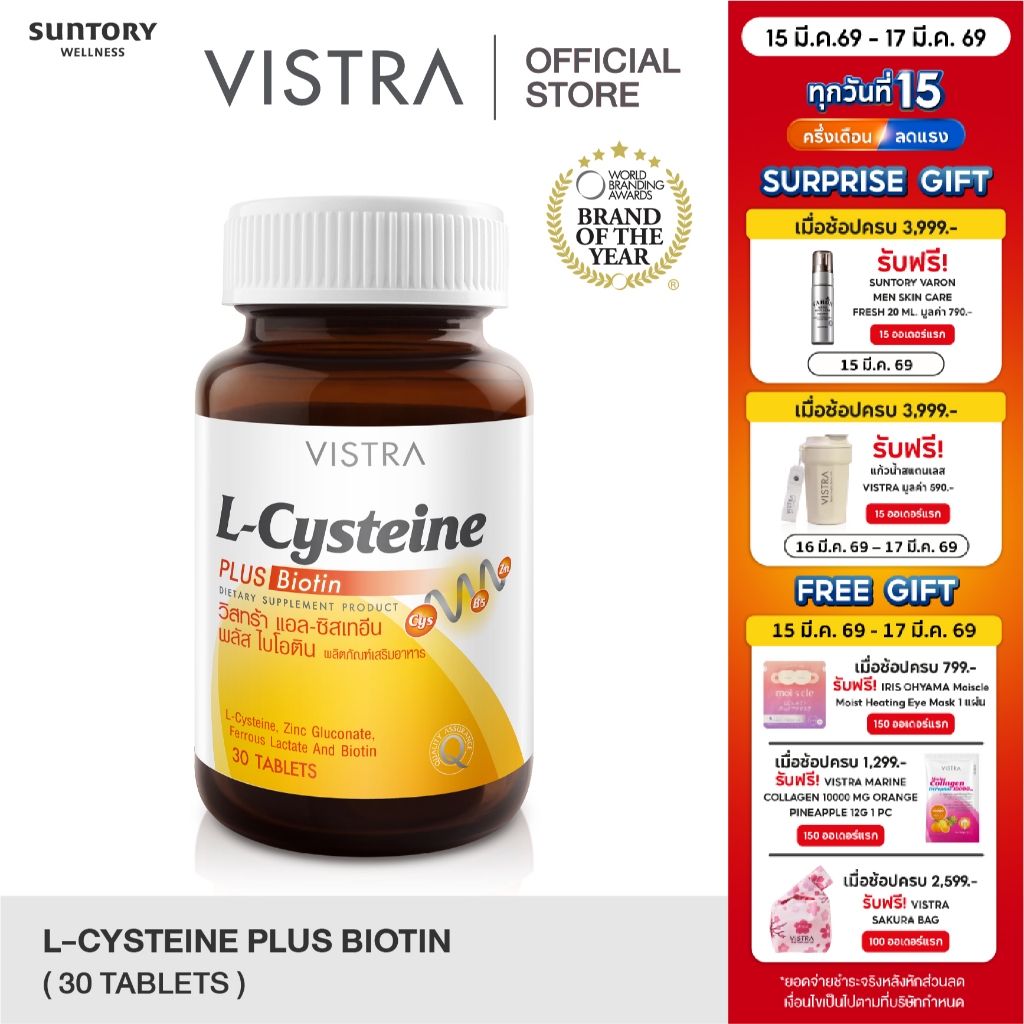 VISTRA L-CYSTEINE PLUS BIOTIN (30Tablets) 36g.(30 เม็ด)