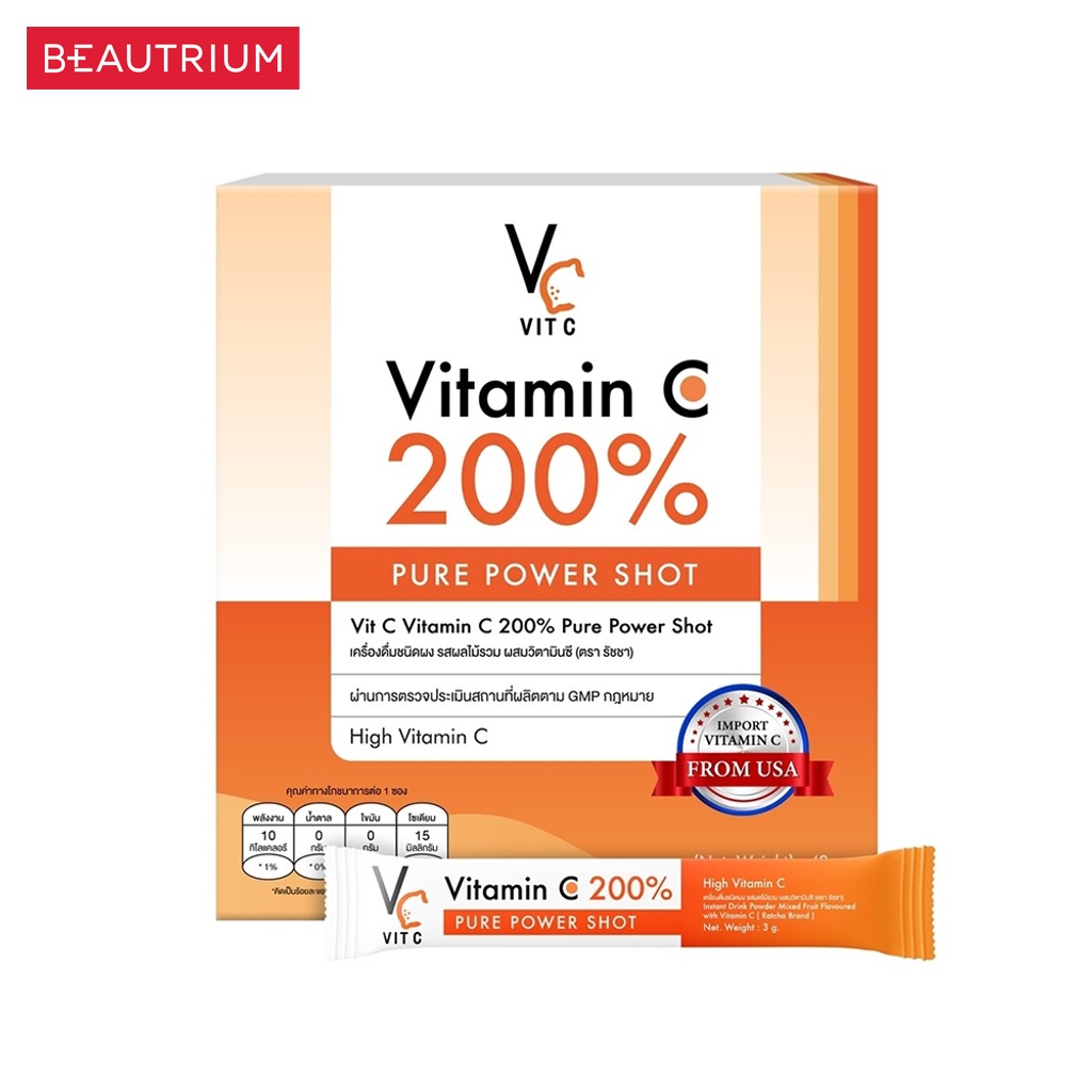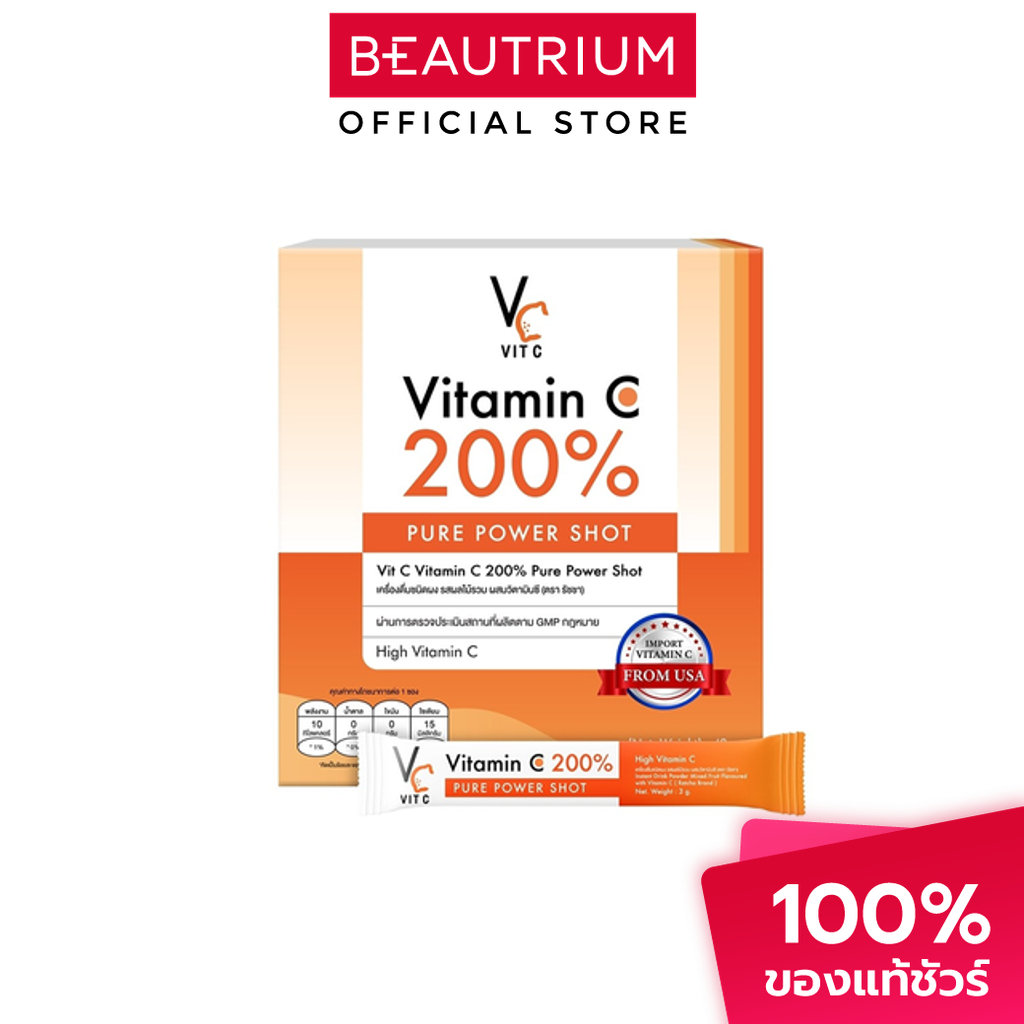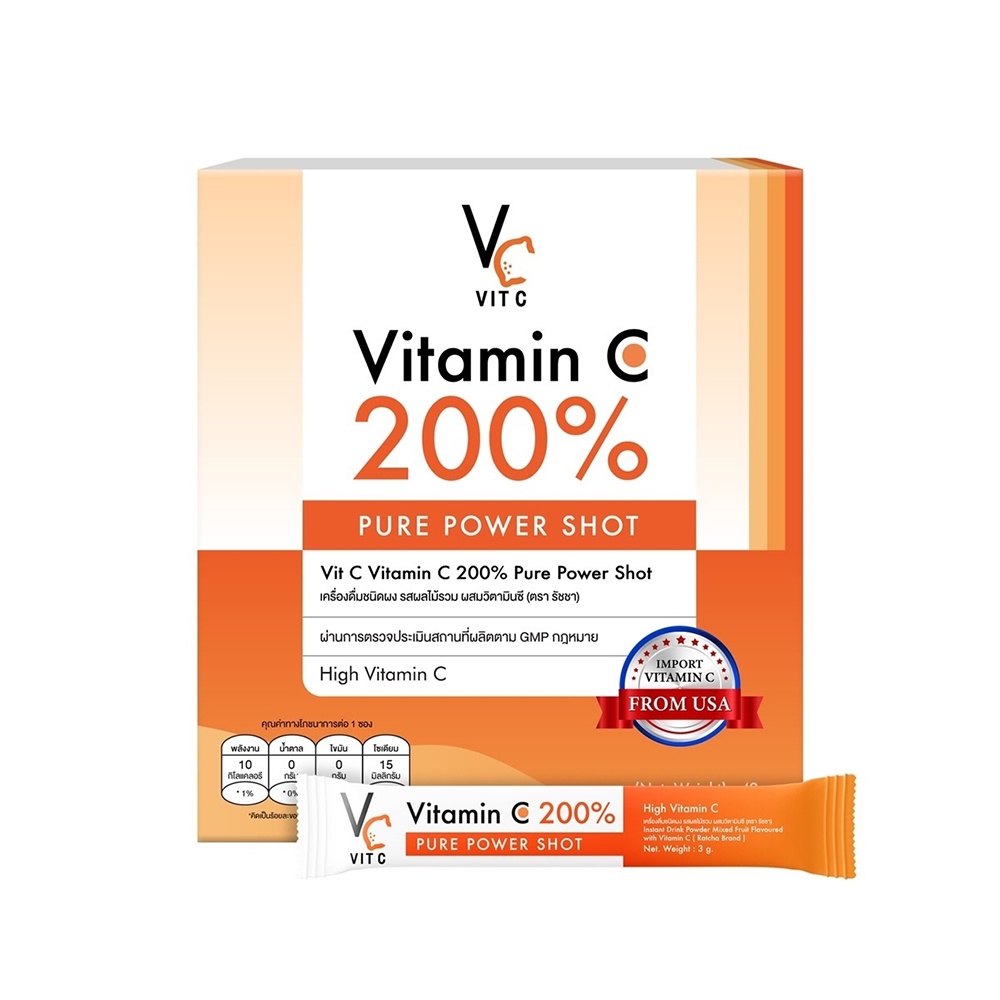 VIT C Vitamin C 200% Pure Power Shot ผลิตภัณฑ์เสริมอาหาร 3g x 14