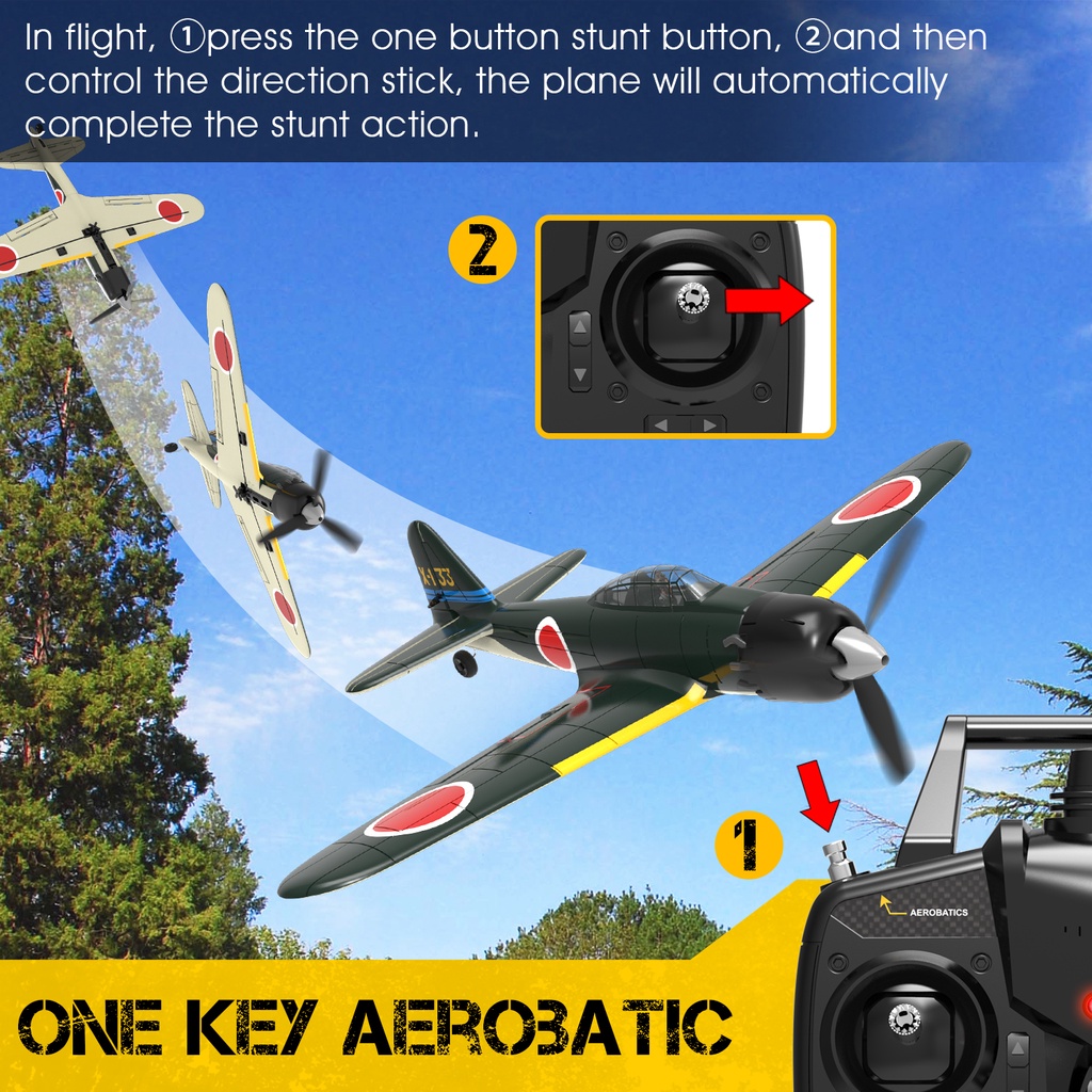 VOLANTEXRC RC Plane A6M Zero RC Aircraft EPP 400mm Wingspan 2.4G 6-Axis Remote Control Airplane For Beginner 761-15 RTF