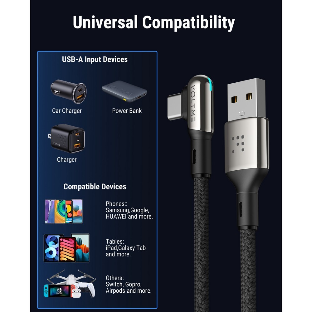 VOLTME POWERLINK STARK USB-A TO USB-C BLACK : 1.2M : 60W