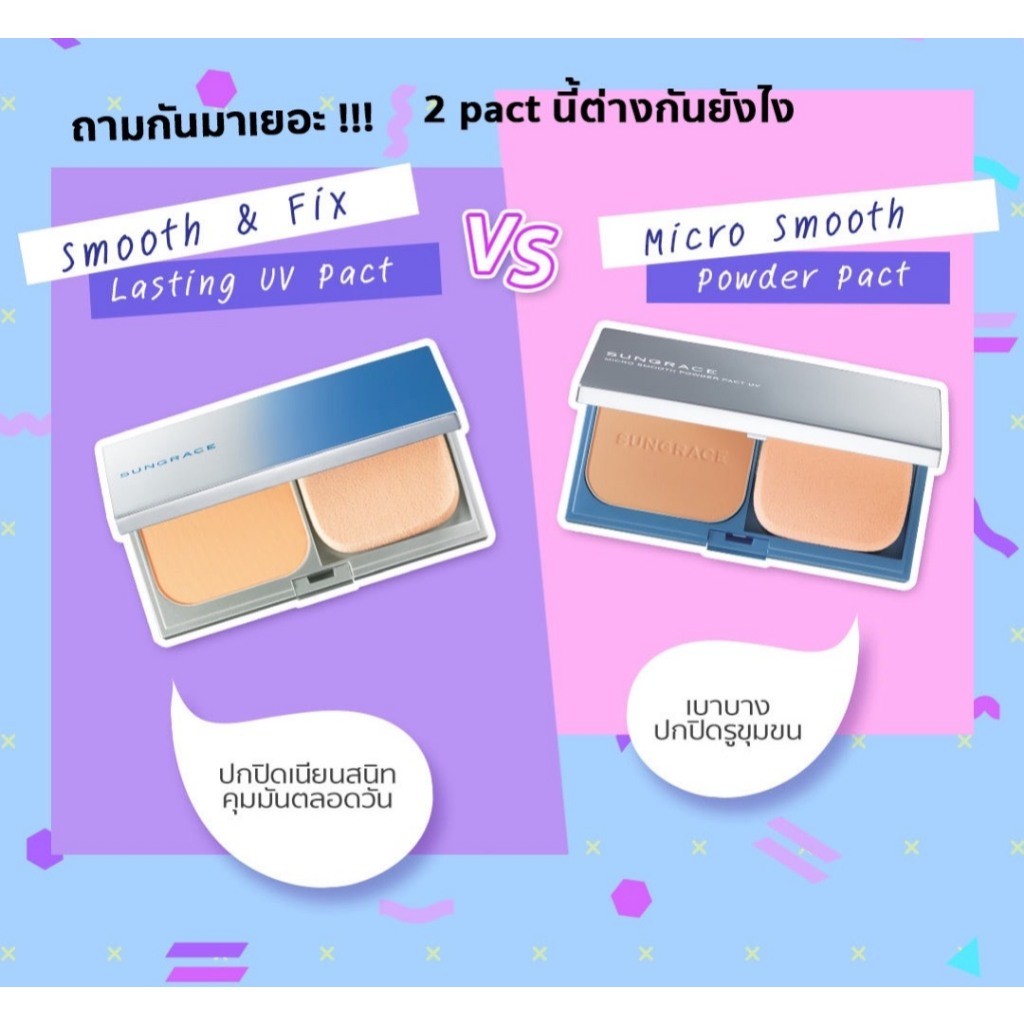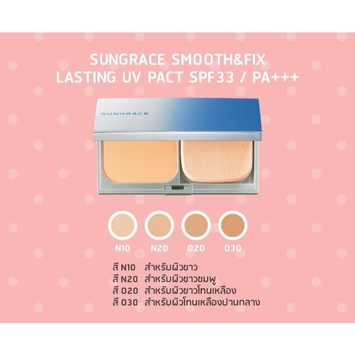 พร้อมส่ง Sungrace Smooth & Fix Lasting UV Pact SPF33 / PA+++ แป้งผสมรองพื้น สำหรับผิวมัน