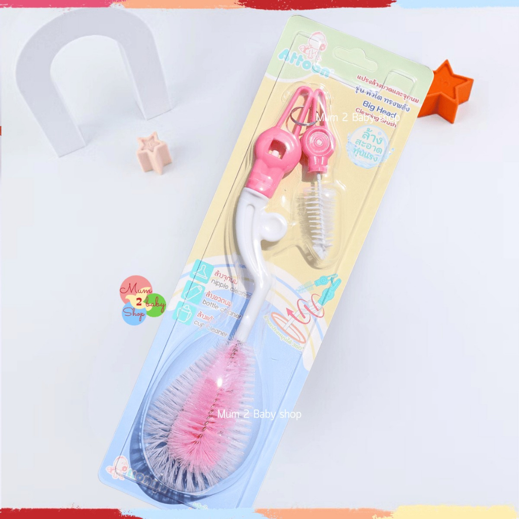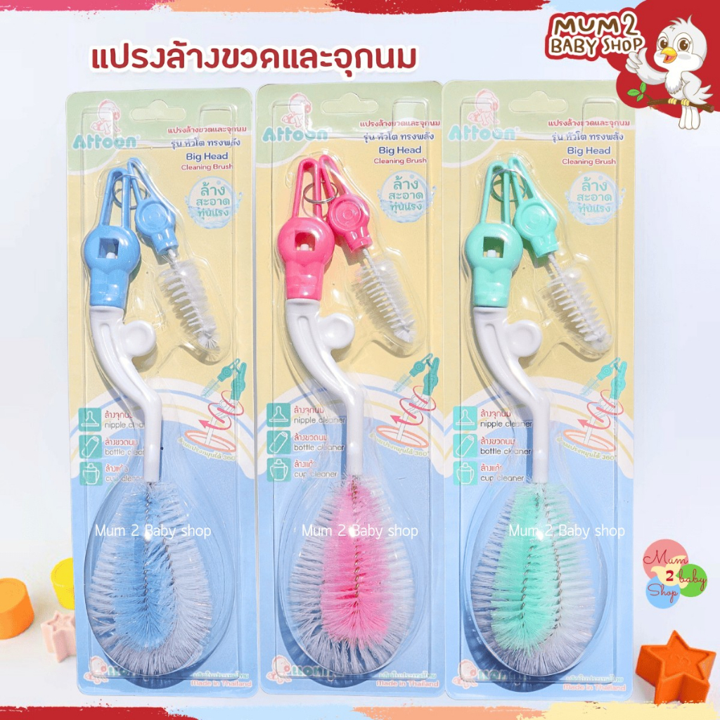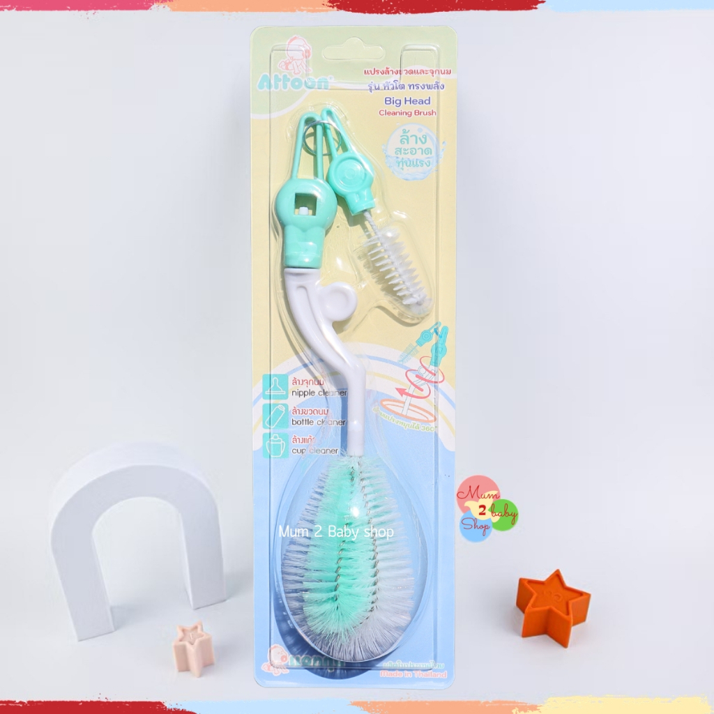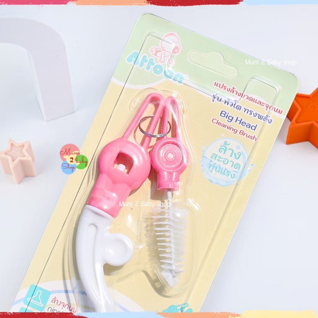 Attoon แปรงล้างขวดนมเด็ก รุ่นหัวโตทรงพลัง หมุนได้360องศา แปรงล้างขวด+แปรงล้างจุกนม ใหม่