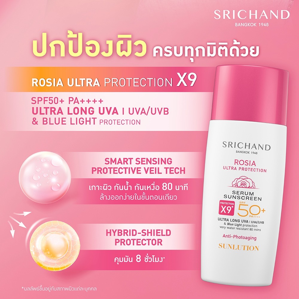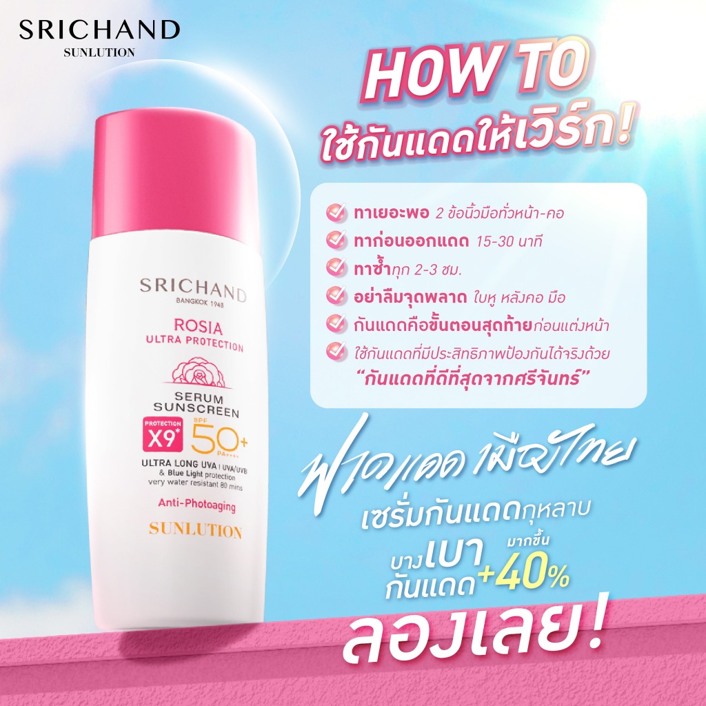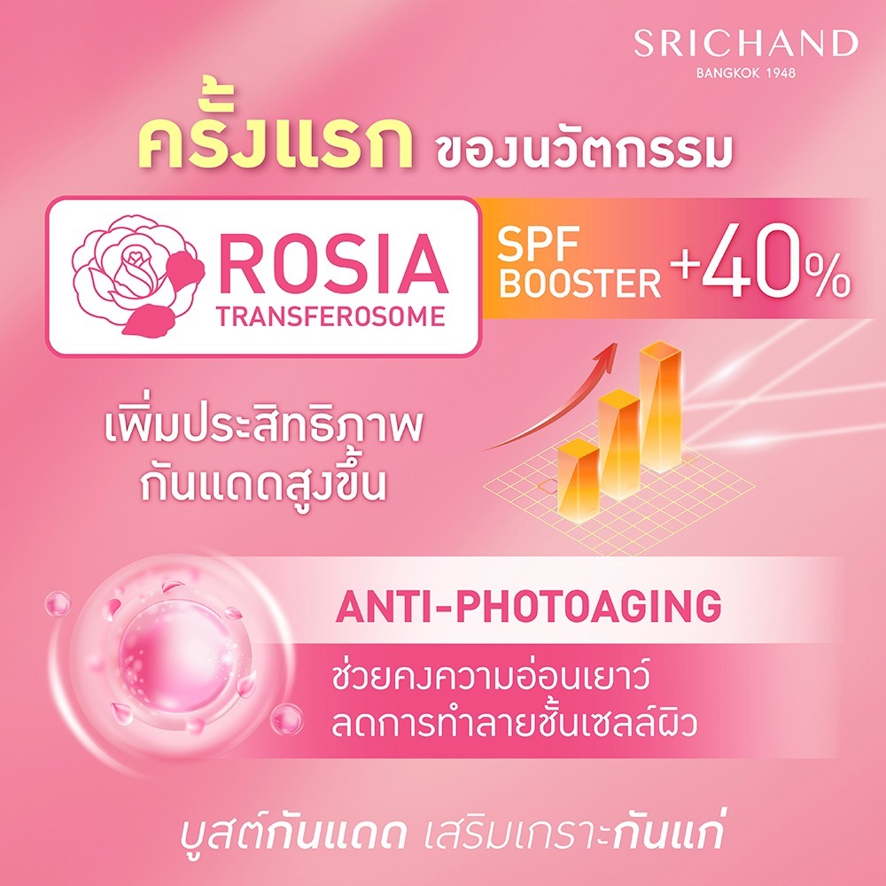 Srichand Rosia Ultra Protection SPF50+ PA++++ ศรีจันทร์ ซันลูชั่น โรเซีย อัลตร้า 40 มล. ครีมกันแดด ไม่เหนอะหนะ