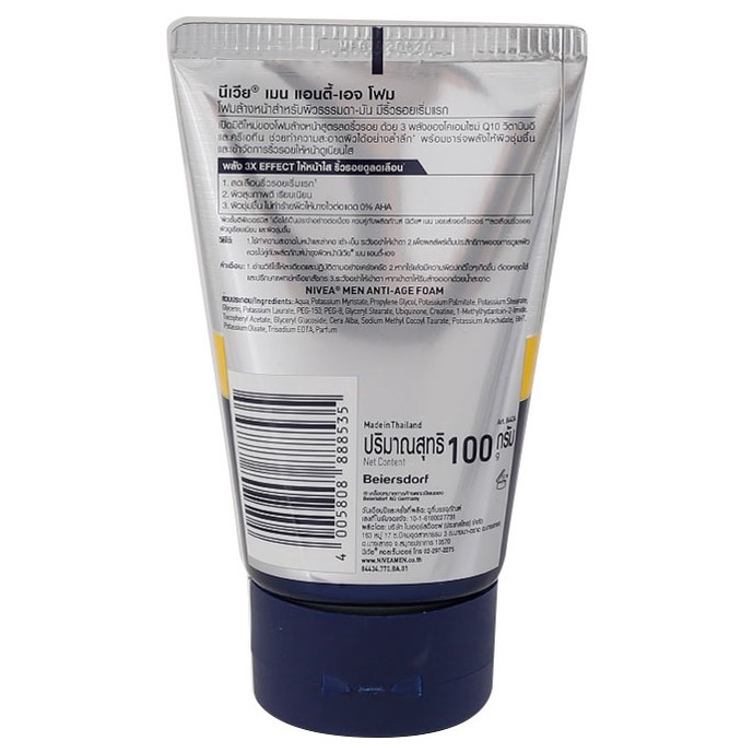 Nivea นีเวีย เมน ทรีดี Q10 โฟม 100 กรัม ผลิตภัณฑ์ทำความสะอาดใบหน้าผู้ชาย