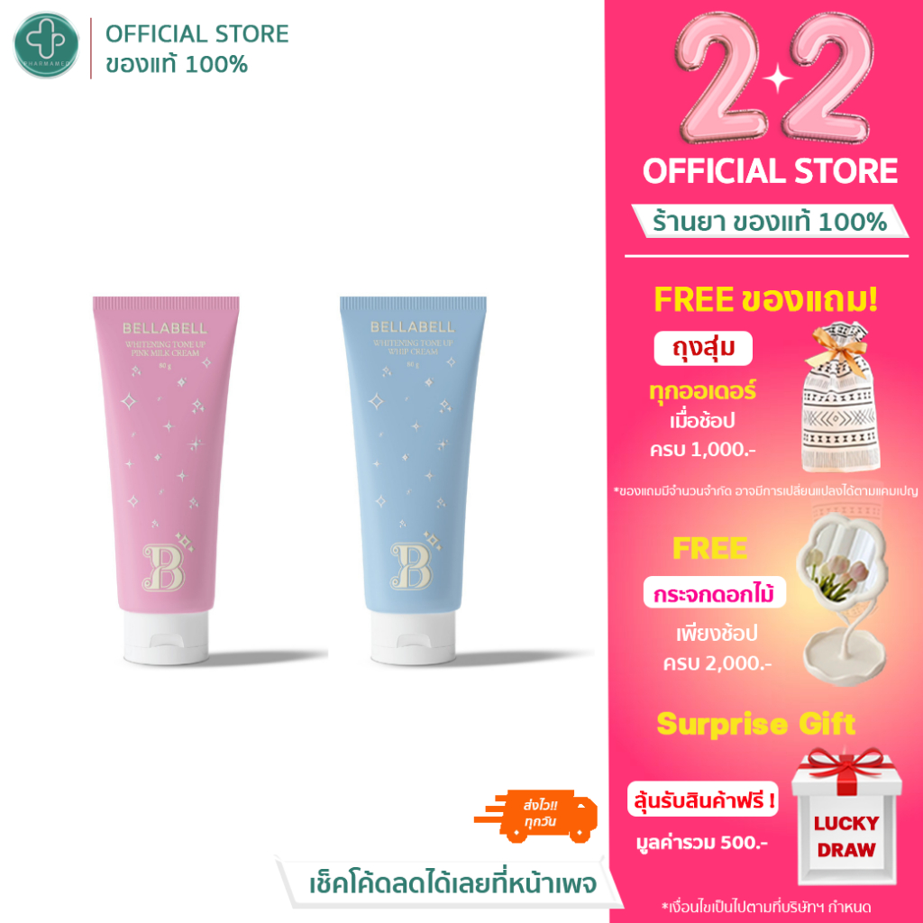 Bellabell | Whitening Tone UP Whip Cream (ฟ้า)/ pink milk Cream (ชมพู) ขนาด 80g