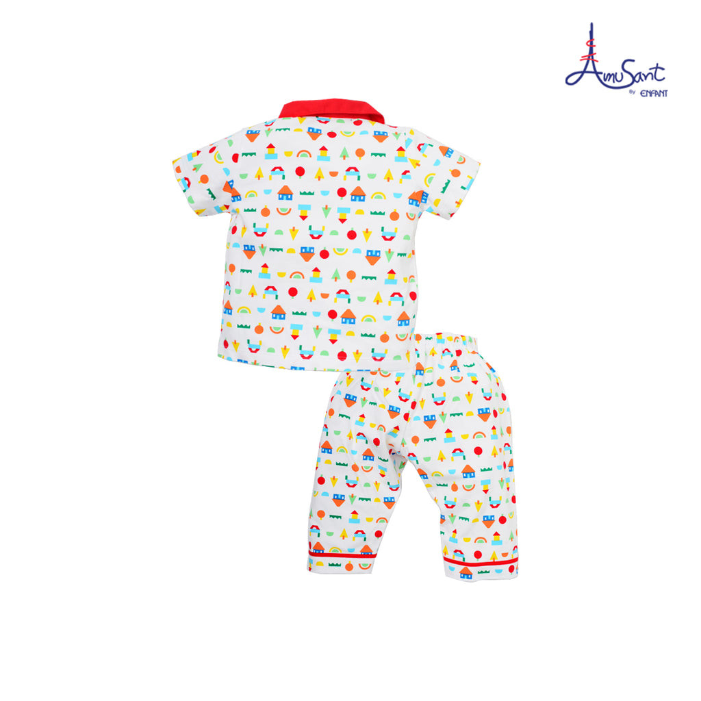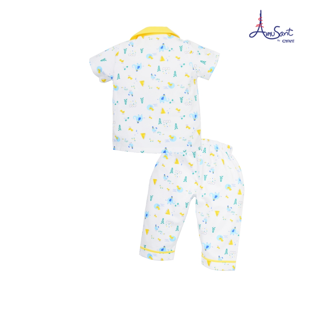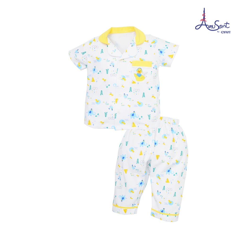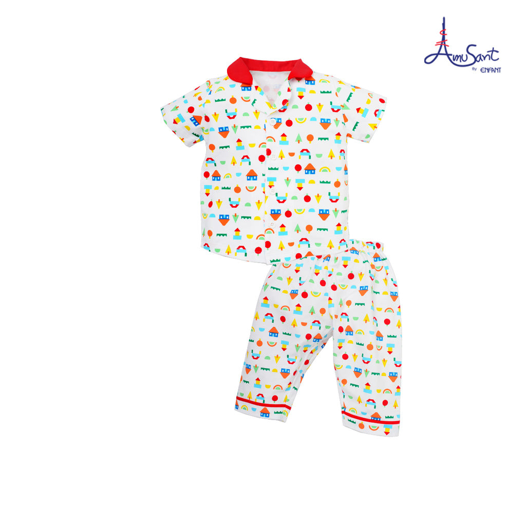 Amusantชุดนอนแขนสั้นคอปก ลายบล็อคไม้ตัวต่อน่ารักๆ EH1K69,EH1K78