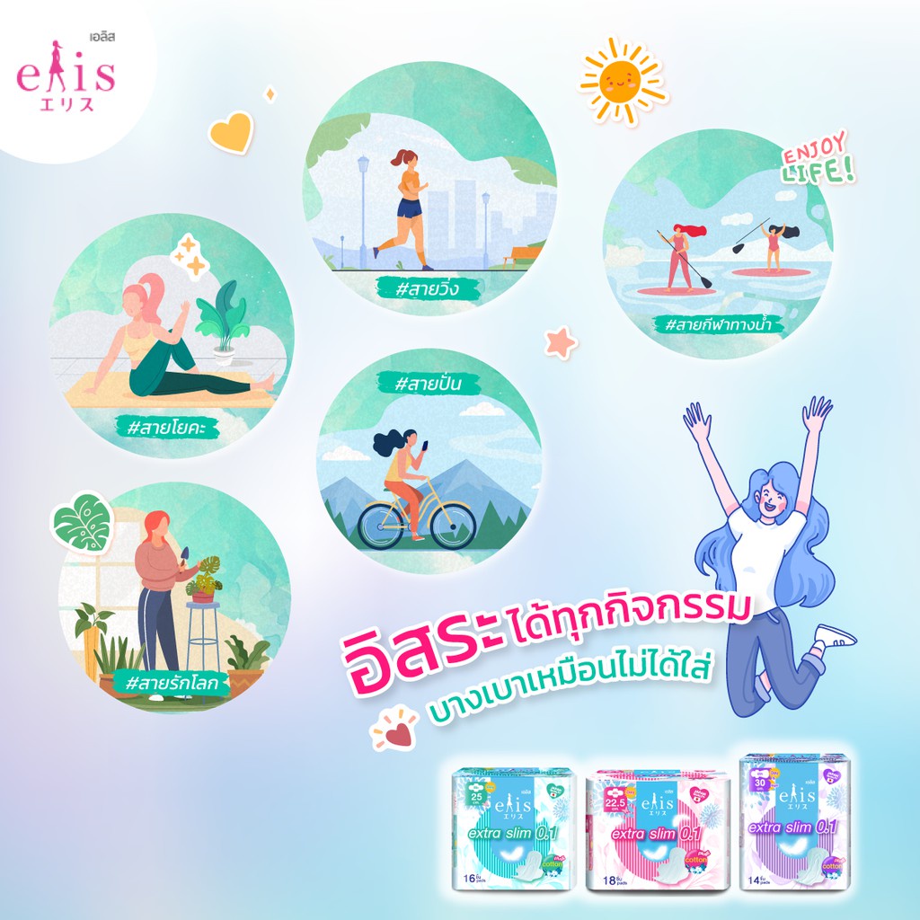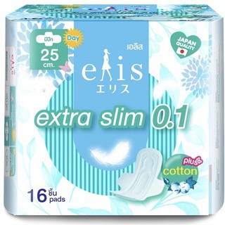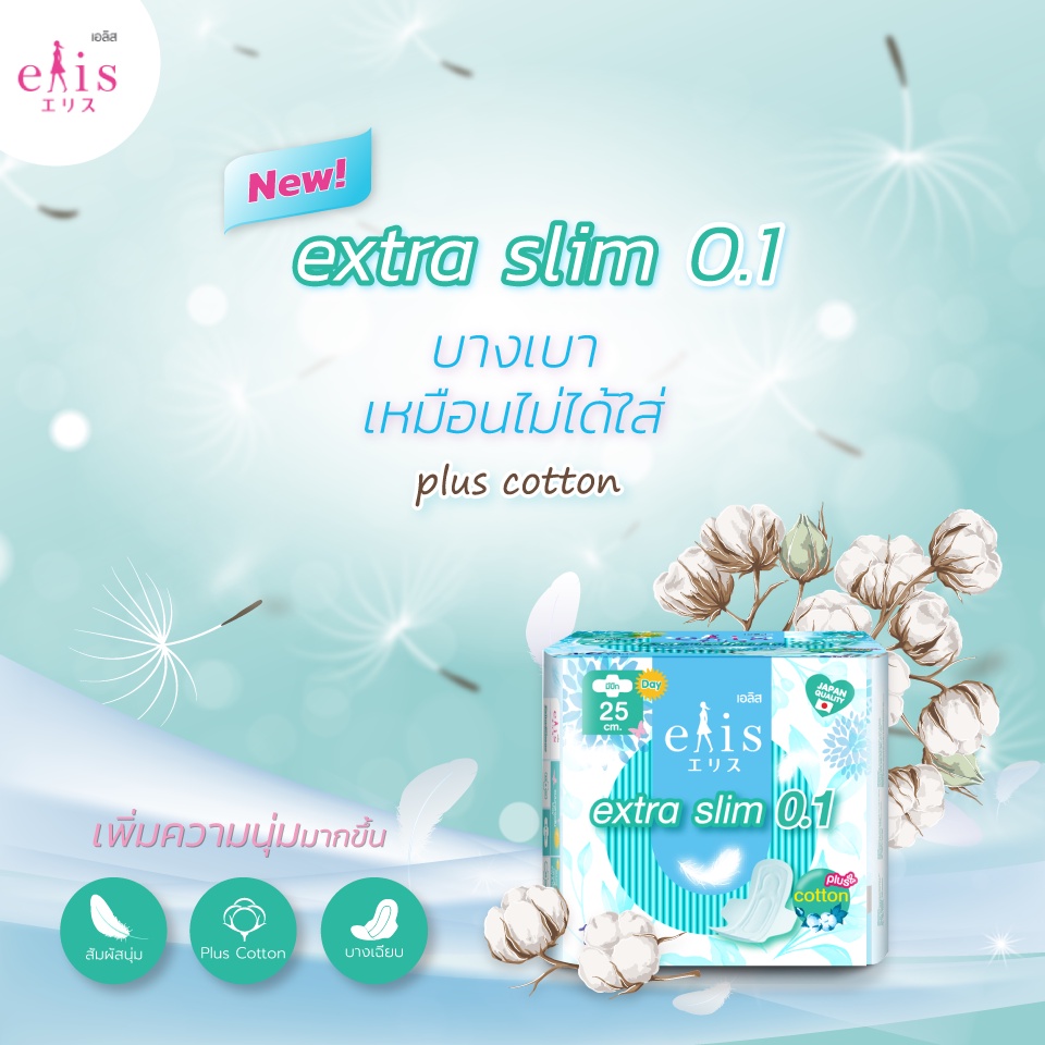 ผ้าอนามัยElis Extra Slim 0.1 Cotton Plus เอลิส เอ็กซ์ตร้าสลิม 0.1 คอตตอน พลัส แบบกลางวัน-กลางคืนมีปีก