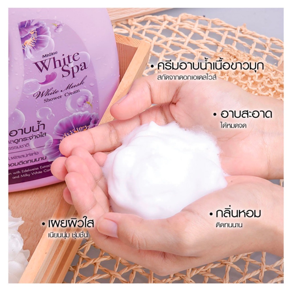 Mistine White Spa White Musk UV Whitening Series ผลิตภัณฑ์ดูแลผิวกาย มิสทีน ไวท์สปา ไวท์มัสค์ ครีมอาบน้ำ / โลชั่น 1000ml