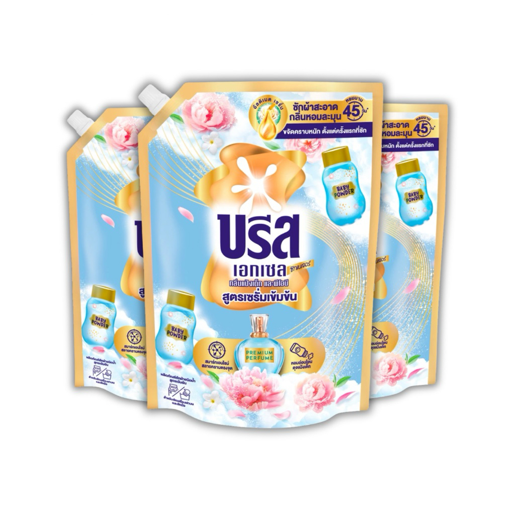(3 ถุง) บรีส เอกเซล น้ำยาซักผ้า สูตรเข้มข้น ขนาด 1,200-1,350 มล. จำนวน 3 ถุง