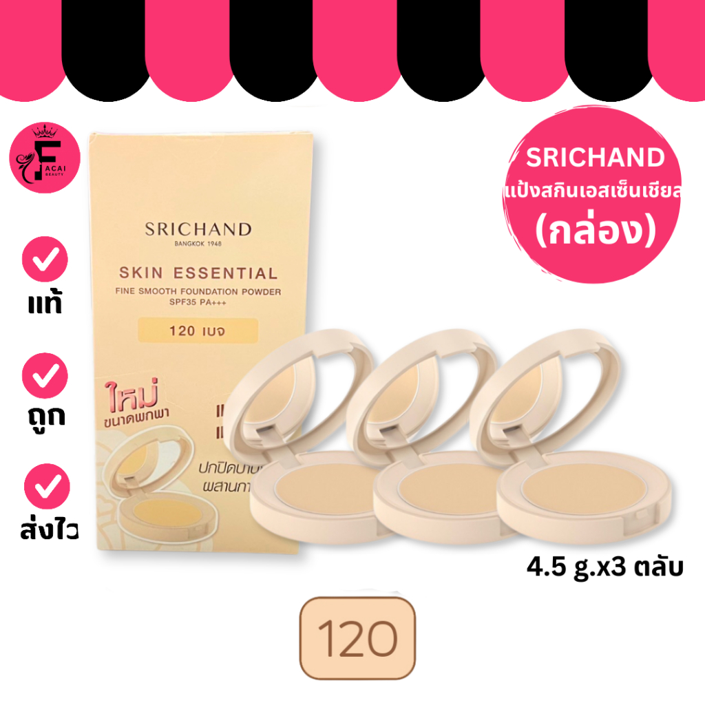 (กล่อง 3 ตลับ) Srichand ศรีจันทร์ สกิน เอสเซ็นเชียล ไฟน์ สมูท พาวเดอร์ SPF35 PA+++ (4.5 g.)