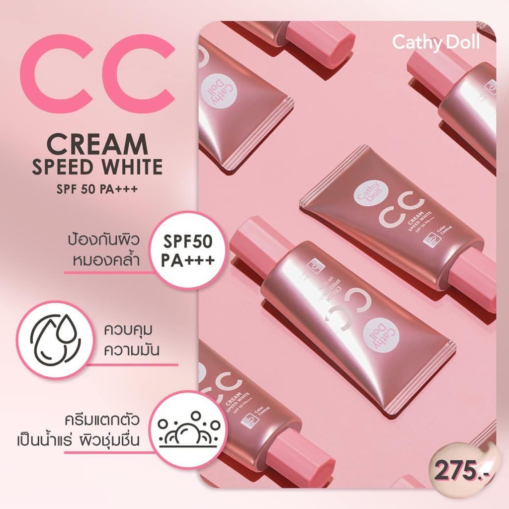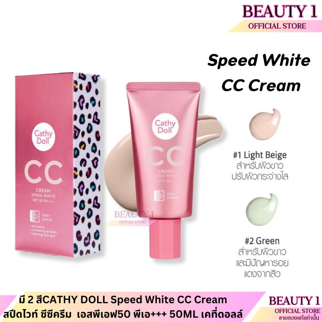 1 หลอด CATHY DOLL สปีดไวท์ ซีซีครีม เอสพีเอฟ50 พีเอ+++ 50ML. มี 2 สี เคที่ดอลล์