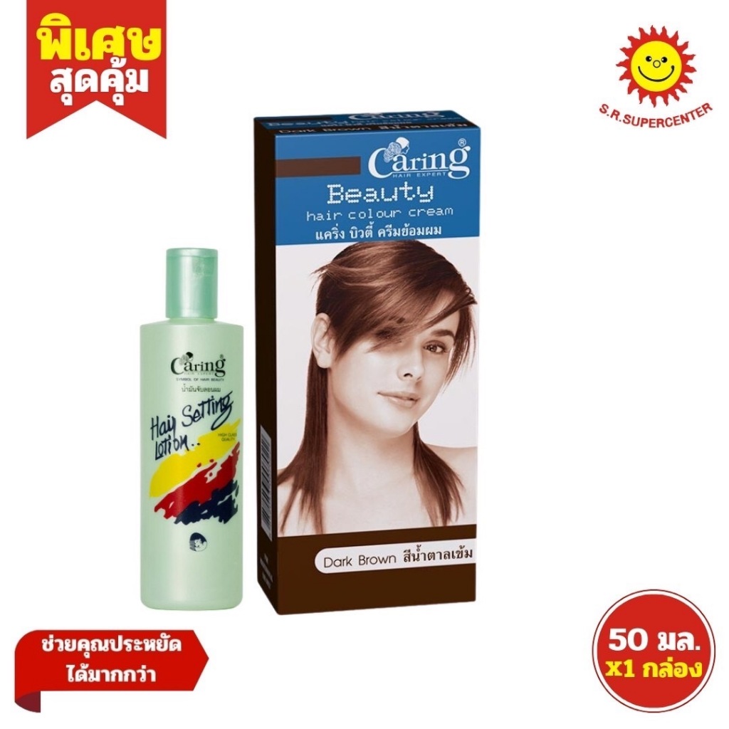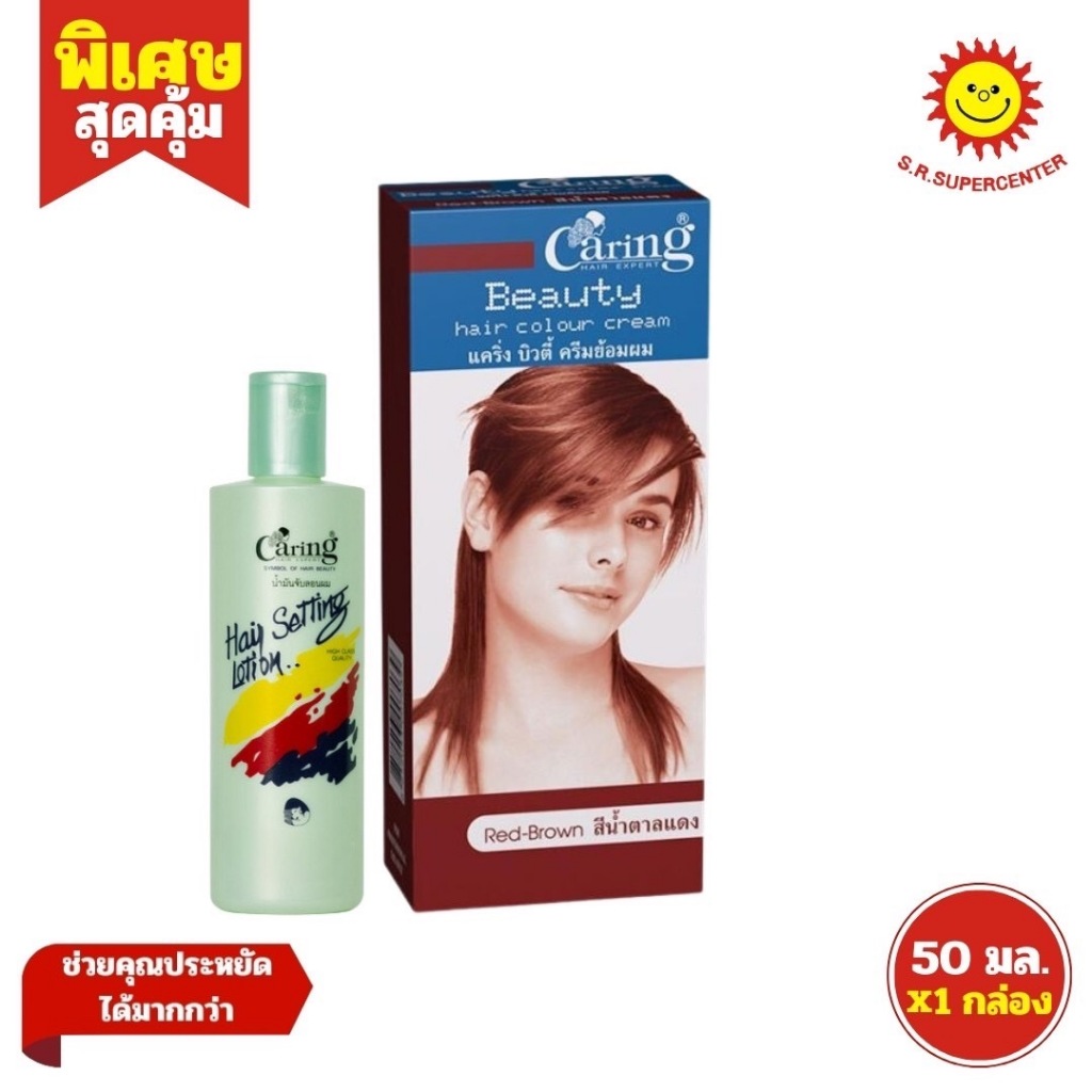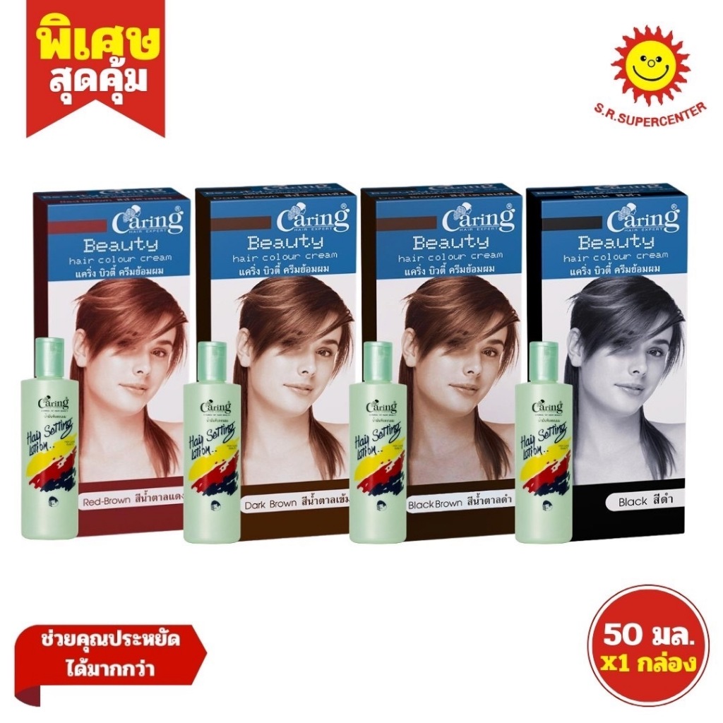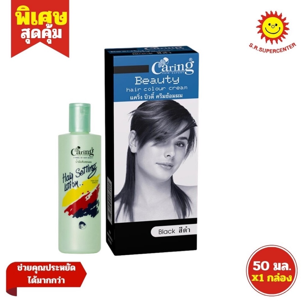 Caring Beauty hair colour cream แคริ่ง บิวตี้ ครีมย้อมผม 50 มล. คละสี >>แถมฟรี! แคร์ริ่ง แฮร์เซ็ทติ้ง น้ำมันเซ็ทผม 100 ม