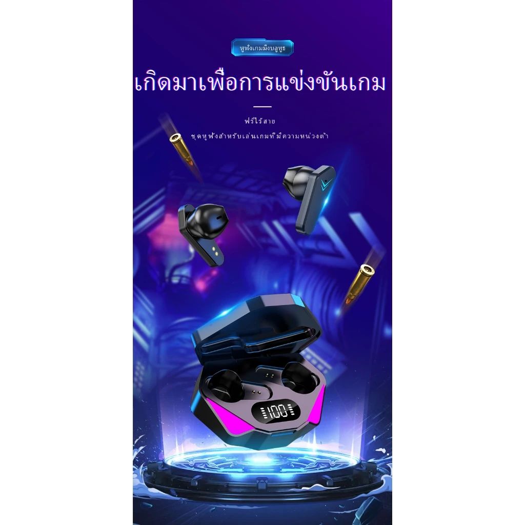 หูฟังบลูทูธ TWS X15 LED RGB Gaming กันน้ำ IPX7 ระบบเสียงไฮไฟ สีดำ
