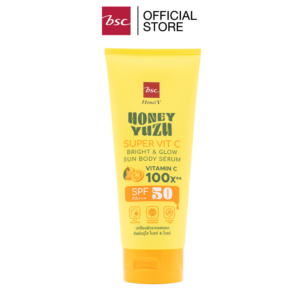 HONEI V BSC HONEY YUZU SUPER VIT C BRIGHT&GLOW SUN BODY SERUM SPF50 PA+++ ฮันนี่ วี บีเอสซี ฮันนี่ ยูซุ ซูเปอร์ วิตซี