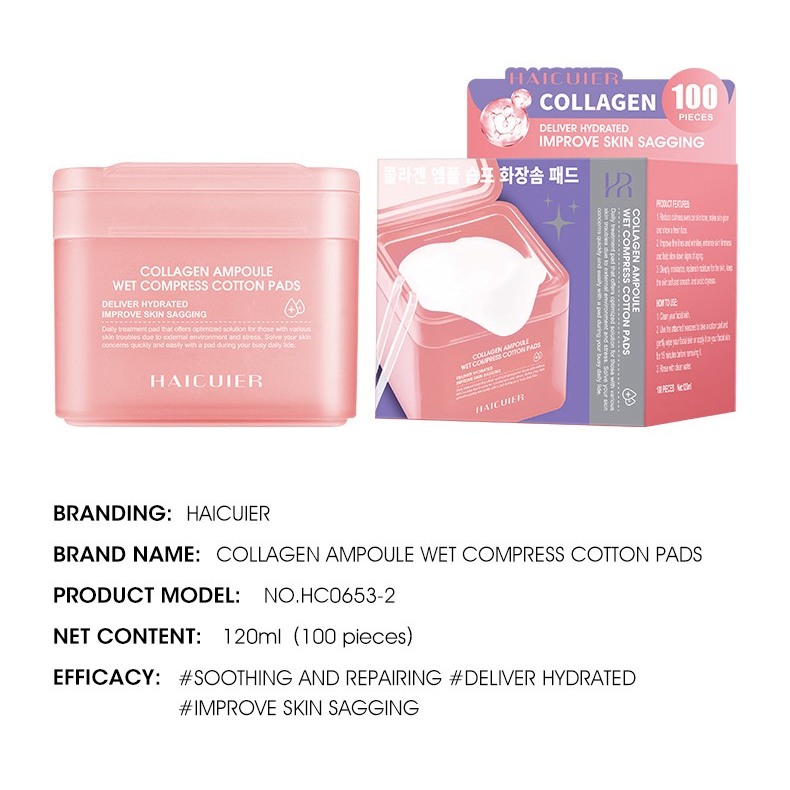 HAICUIER โทนเนอร์แพด TONER PAD ขนาด 100 แผ่น สูตร Vitamin C / สูตร คอลลาเจน HC0653