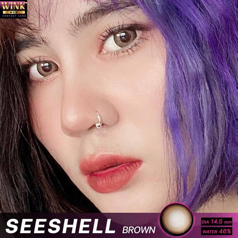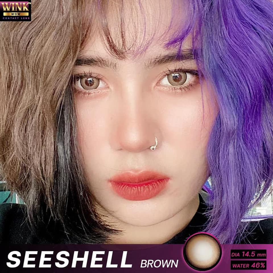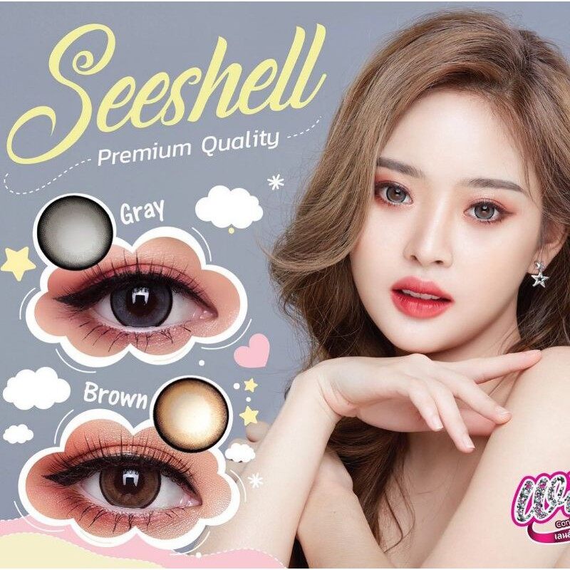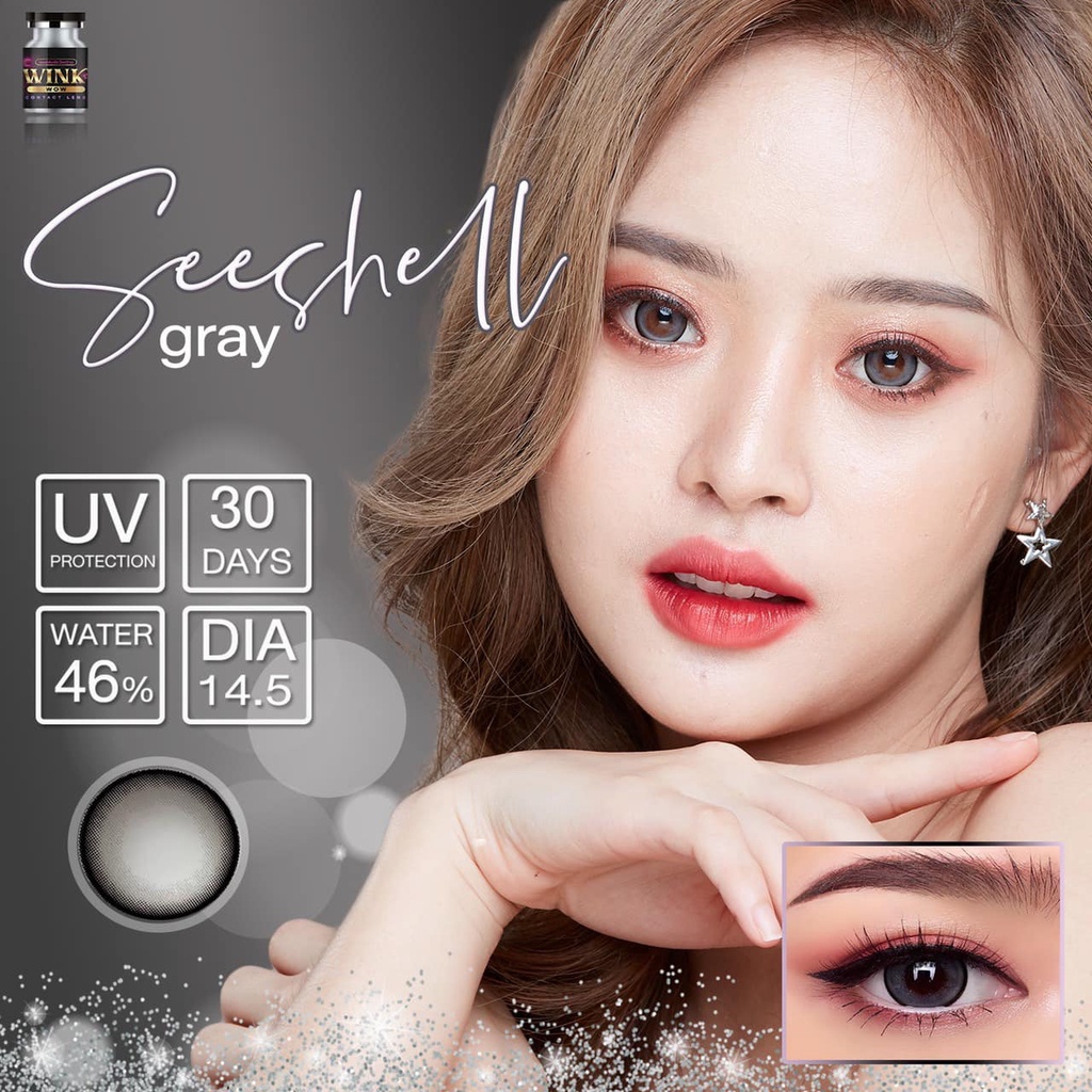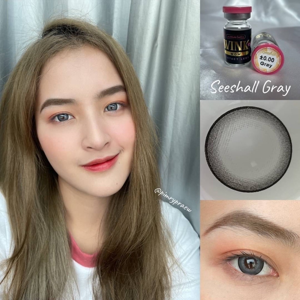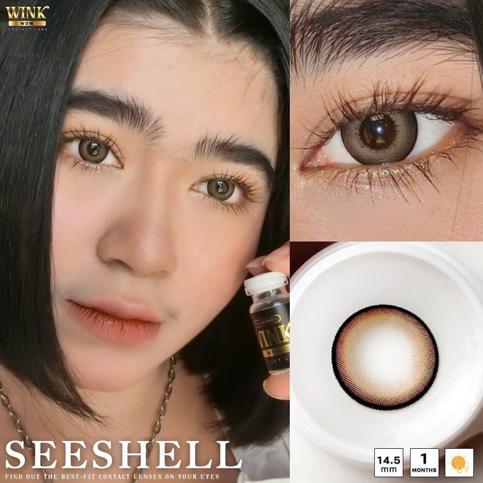 💋 สุดปัง มีค่าสายตา 💋 Wink Seeshell Gray Brown บิ๊กอาย สุดปัง คอนแทคเลนส์ รายเดือน มีอย แถมตลับฟรี เลนส์นิ่ม สวยปังมาก