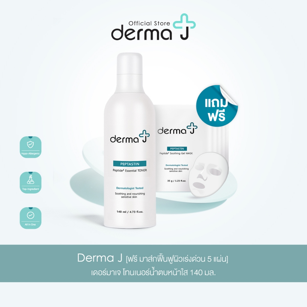 Derma J [ฟรี มาส์กฟื้นฟูผิวเร่งด่วน 5 แผ่น] เดอร์มาเจ โทนเนอร์น้ำตบหน้าใส 140 มล.