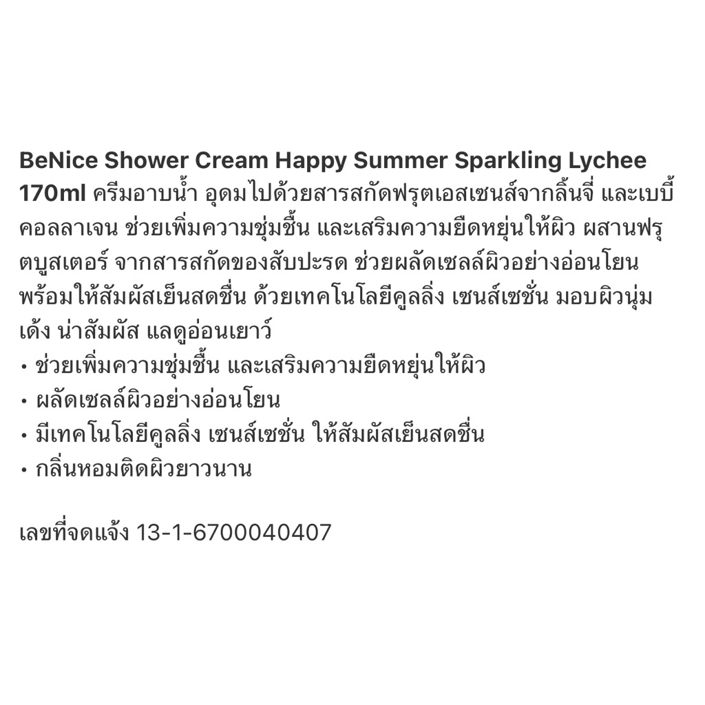Exp.28 | Benice Shower Cream อาบน้ำแบบขวด 170 มล ถุงเติม 400 มล