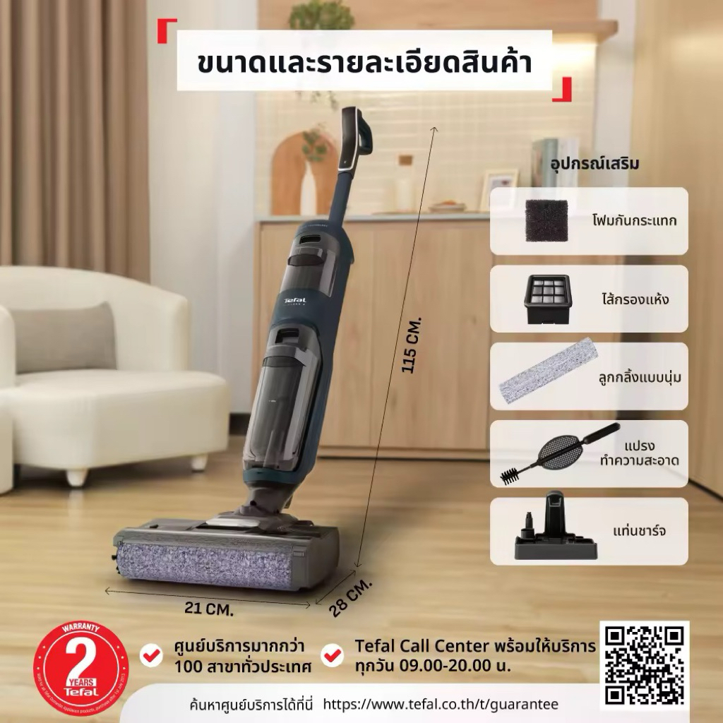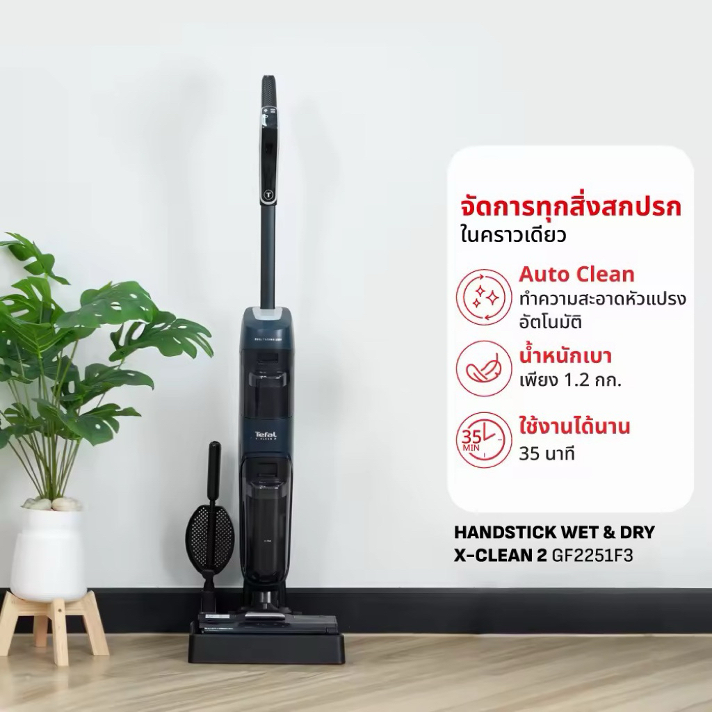 [สินค้าใหม่] Tefal เครื่องดูดฝุ่นถูพื้นไร้สาย ดูดน้ำได้ FLOOR WASHER X-CLEAN 2 รุ่น GF2251F3