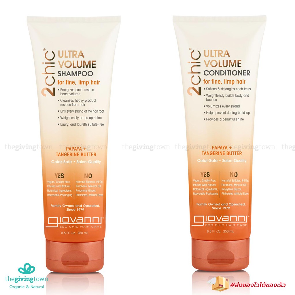 แชมพู ครีนวดผม Giovanni 2-Chic Ultra-Volume 250 มล. Tangerine & Papaya Butter. Shampoo and Conditioner