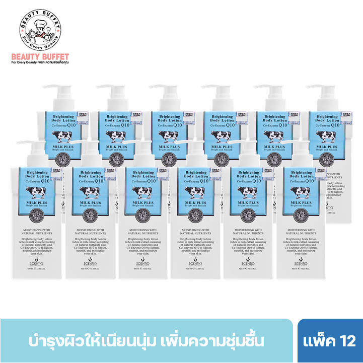 [แพ็ค12ขวด สุดคุ้ม] BEAUTY BUFFET SCENTIO MILK PLUS BRIGHTENING Q10 BODY LOTION - บอดี้โลชั่น (400ML.)