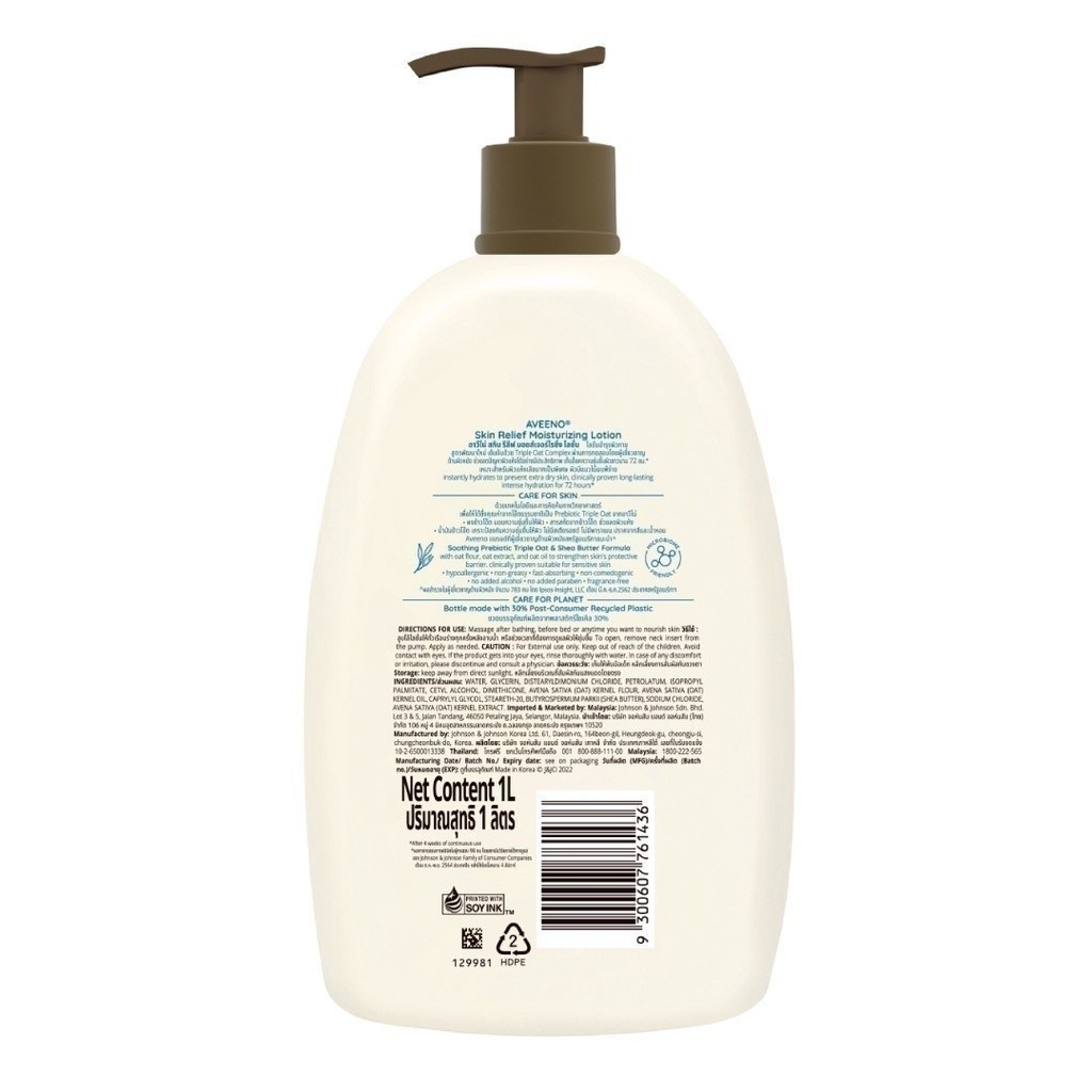 อาวีโน่ โลชั่นทาผิว สกิน รีลีฟ มอยส์เจอร์ไรซิ่ง โลชั่น 1000 มล. Aveeno Skin Relief Moisturizing Lotion 1000 ml.